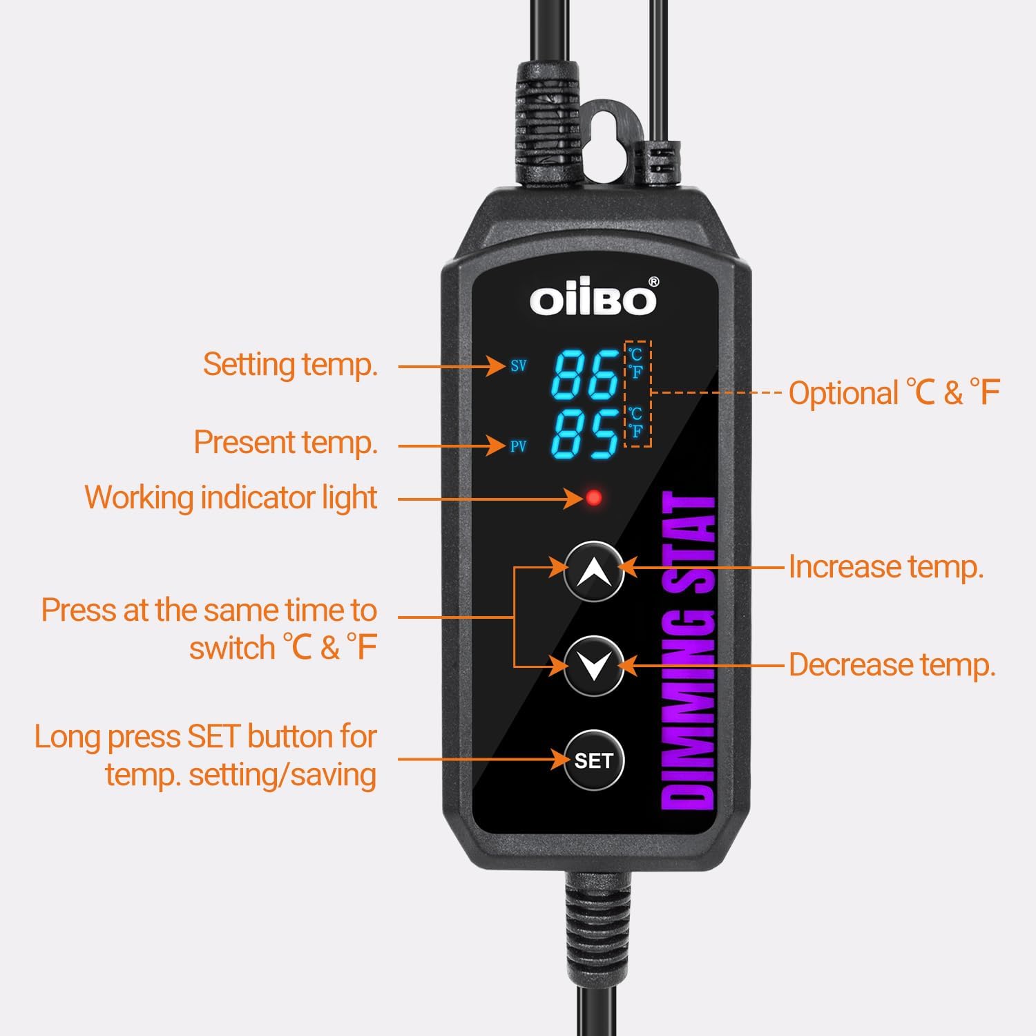 Oiibo Digital Heat Mat Thermostat, PID Reptile Heat Lamp Dimming Thermostat Heating Pad Temperature Controller for for Aquarium Reptiles and Seedling, Breeding, Hatching
