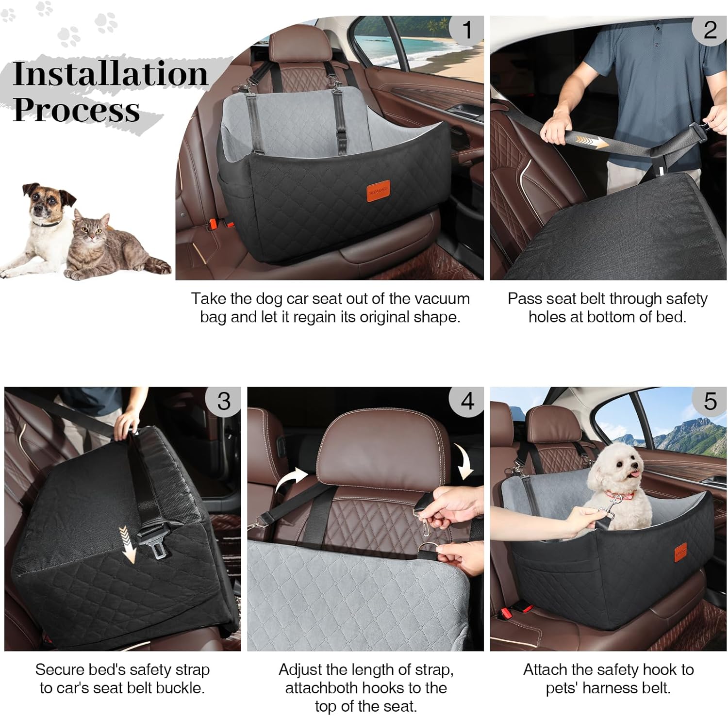 - Enhanced Safety – Designed with 3 adjustable safety straps, dual safety belt loops, and a non-slip bottom, this dog car seat keeps your pet securely in place while preventing distractions, ensuring a safe ride for both pets and drivers