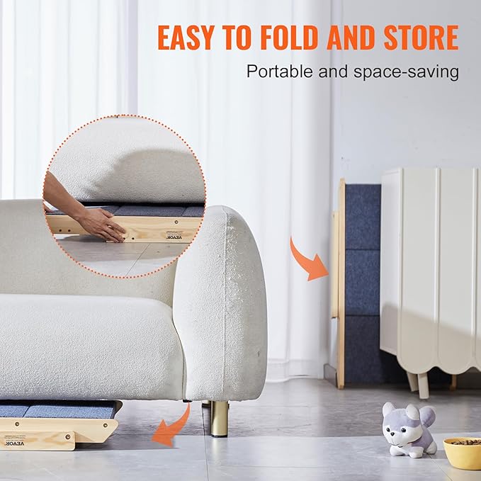 - Easy to Carry and Store: Thesefoldable pet stairs are foldable, making them convenient to store and carry. They can be effortlessly tucked away in a corner of your car or home with space-saving design.