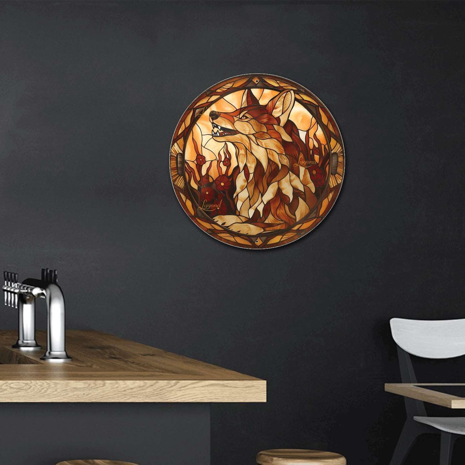 Lygond Metal Sign Tin Sign Circular Stained Glass Coyote Bar Signs for Home Decor for Club 12×12 Inches