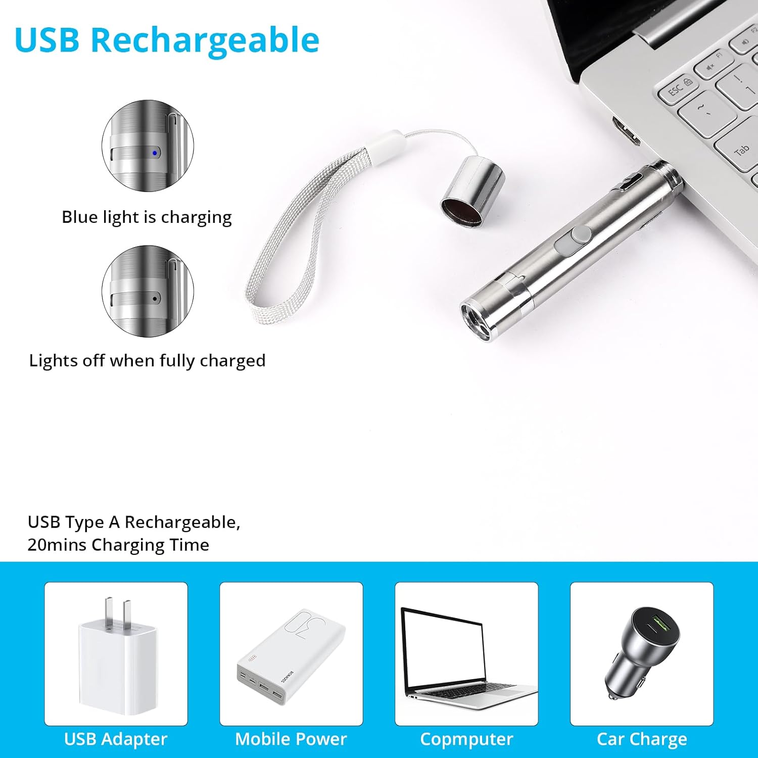 - 【Multiple Function】The cat wand toy is versatile. It can also be used as a pointer for presentations, with a bright beam for clear visibility. You can turn it on with a single push, no need to hold down the button. The lighting mode can glow in the dark, and the purple mode can detect counterfeit money.