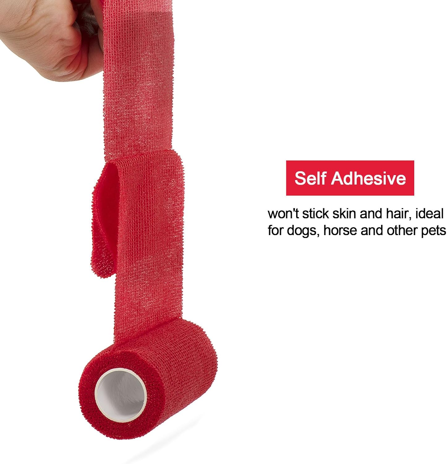 - 【Wide Application】The self adhesive bandage wrap tape is good for compressing, providing support, ideal for strains or sprains. Athletes like to use it on their wrists, fingers, hands to stabilise for protection. Elastic bandages wrap self adherent is great for stay in place on our furry pets, like dog or cat, and won't stick fur.The self adherent cohesive bandages also do good job in wrap grip cover, bottle,etc to prevent slip.