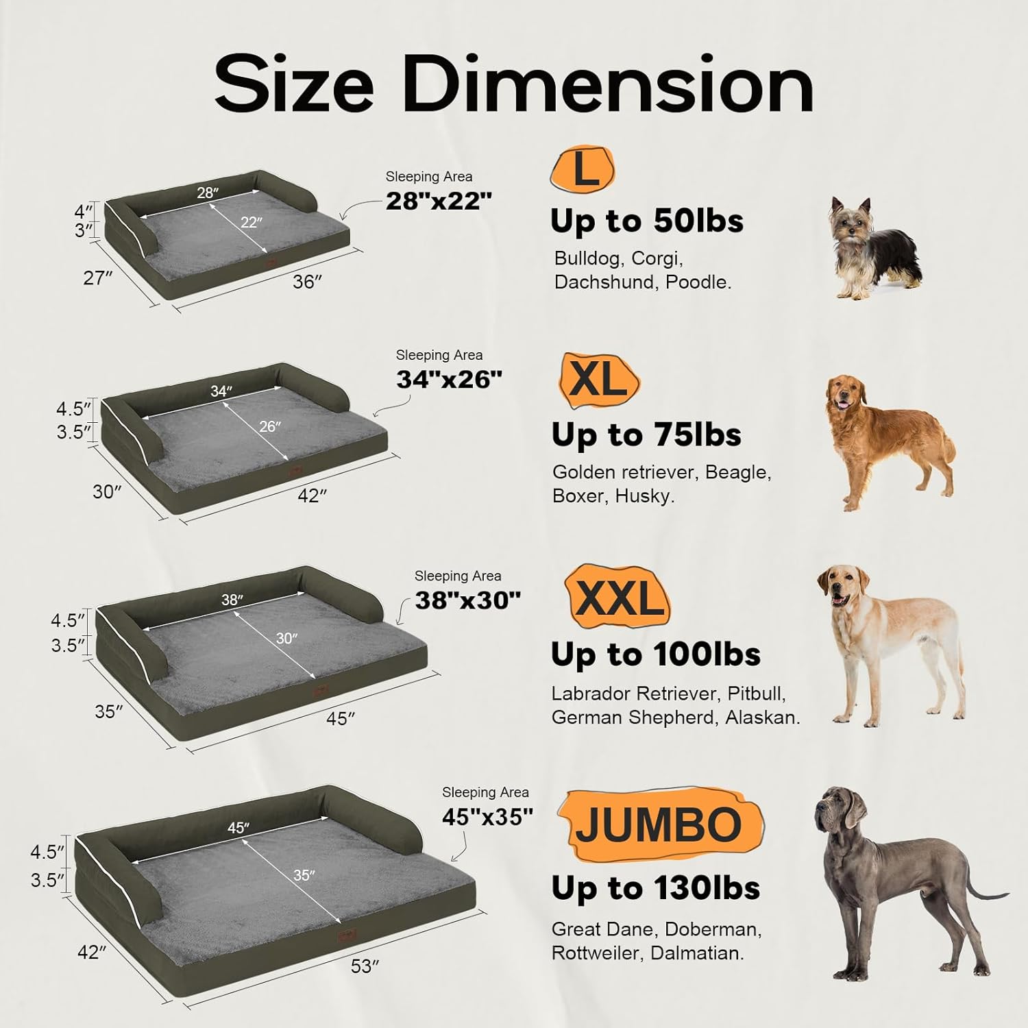 - 【Size Guide】 Its extra large size lets dogs and cats stretch, play, and find a cozy sleeping position, ensuring they feel relaxed and unrestricted; the dark green jumbo dog bed (53x42x8 inches) is ideal for dogs weighing up to 130 pounds