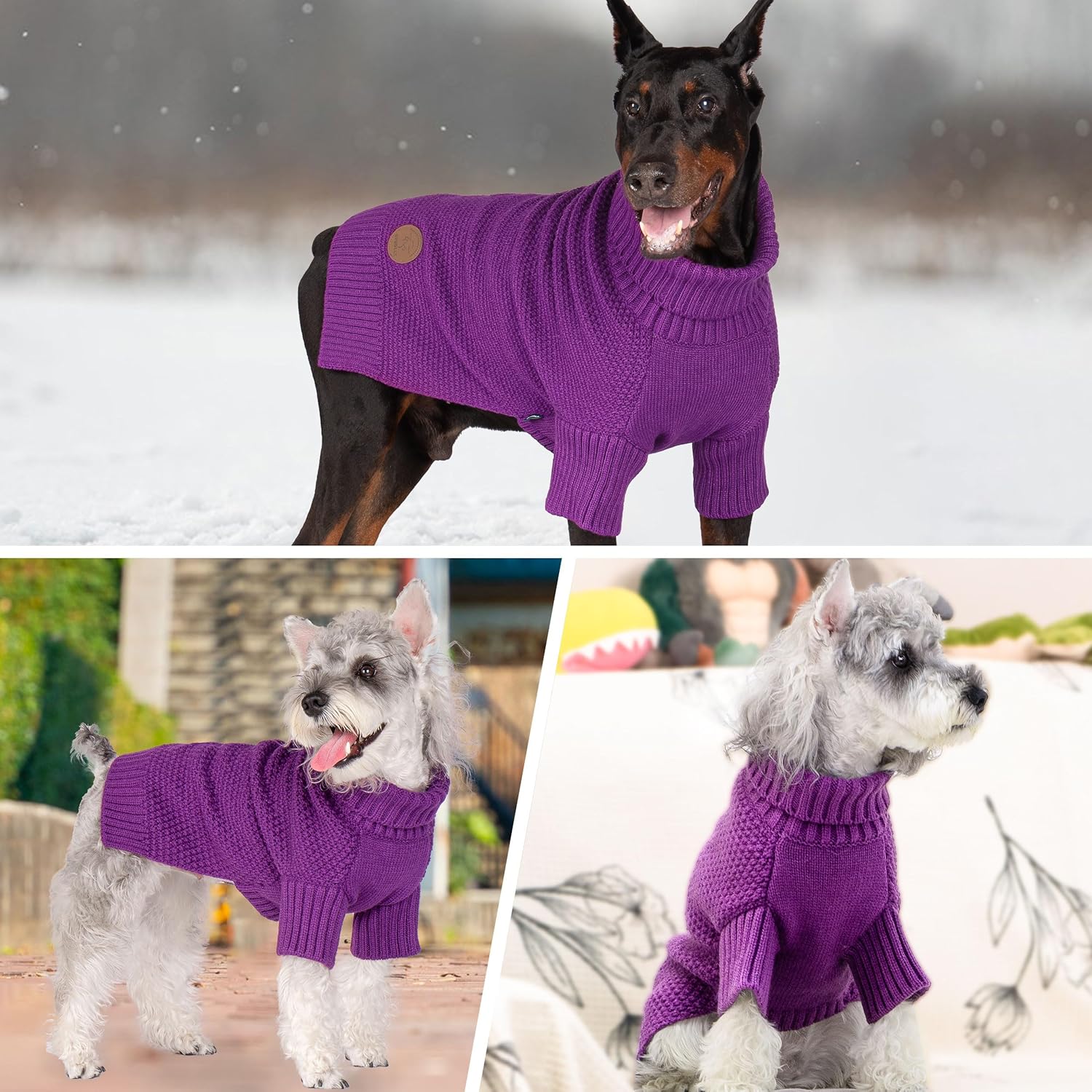 cyeollo Dog Sweater Pullover Turtleneck for Dogs, Classic Knitwear Fall Winter Cold Weather Dog Clothes Warm Pet Apparel Small Dogs Sweaters, Purple L