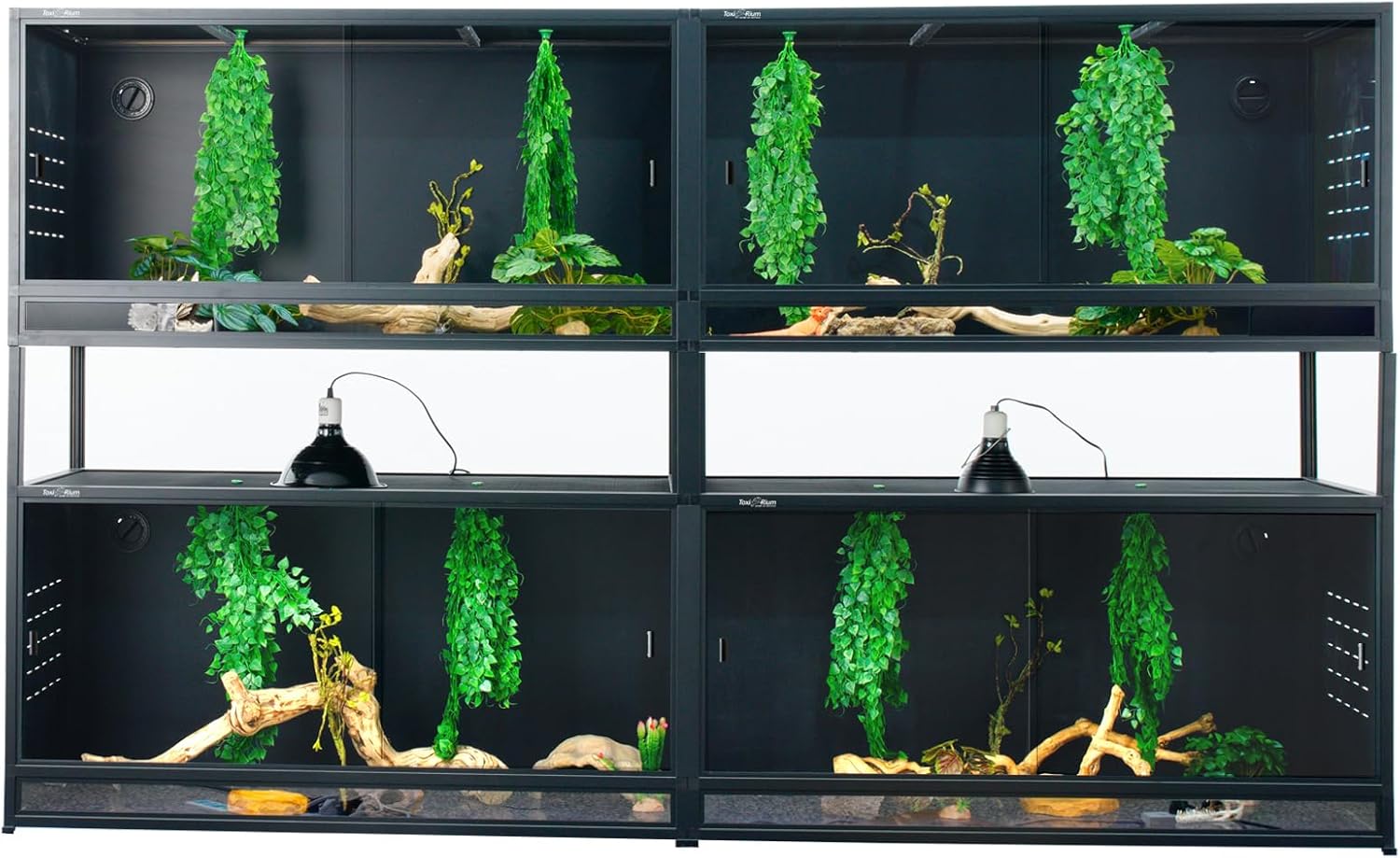 - 【Sturdy and Easy Installed PVC Reptile Enclosure】: Non-reflective black-tinted side and back panels provide the reptiles with privacy and security, reducing their anxiety and minimizing the stress for them, no need to prepare an extra reptile tank background instead. Enhanced support terrarium frames make this reptile enclosure sturdy and durable enough for both young and adult reptile pets