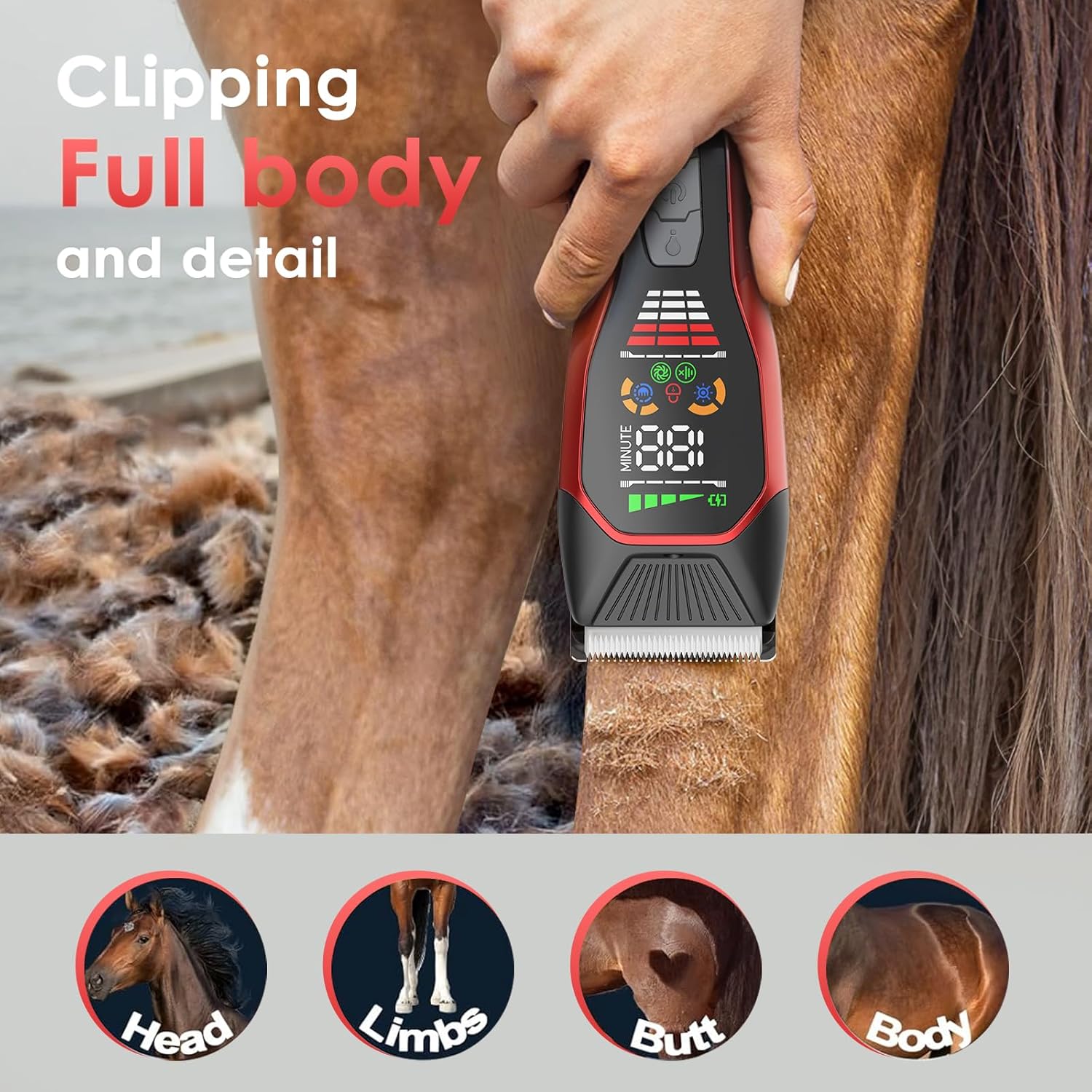 Horse Clippers Low Noise Rechargeble Horse Trimmer Kit, Pet Shaver for Heavy Thick Coats Grooming, 2-Speed Cordless Animal Shears for Horse, Sheep, Cats and Dogs