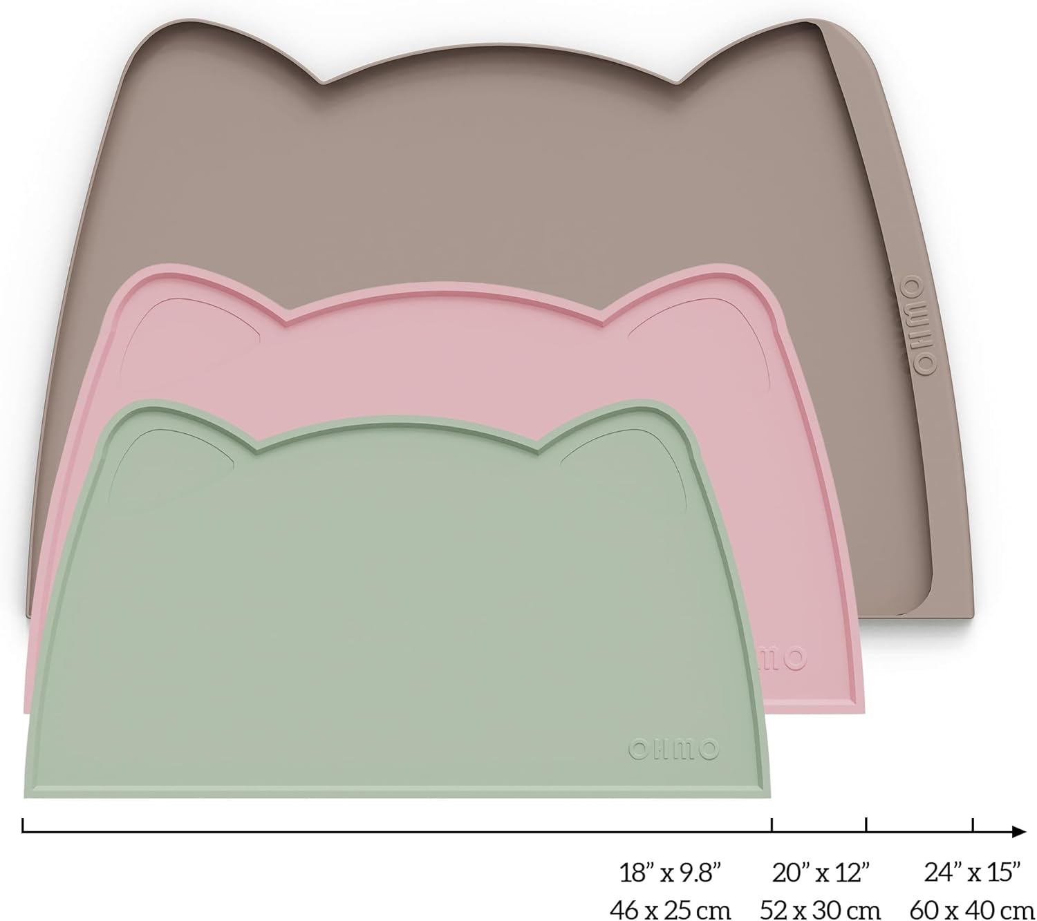 OHMO - Cat Food Mat, Silicone Pet Feeding Mat for Floor Non-Skid Waterproof Dog Water Bowl Tray, Easy to Clean Pet Placemat (Sage Green, 18 * 9.8'')