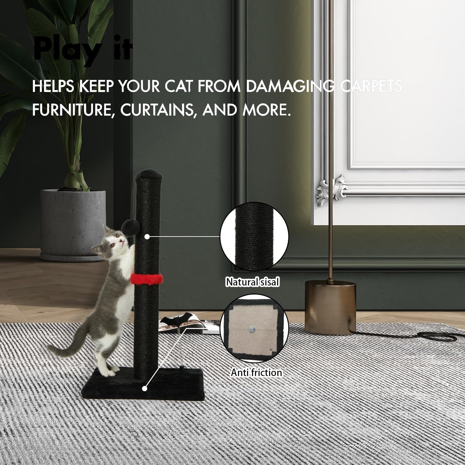 MECOOL Cat Scratching Post Premium Sisal Scratch Posts with Hanging Ball Vertical Scratcher for Indoor Cats and Kittens,Black