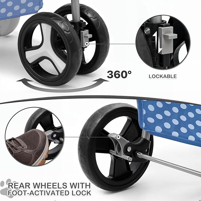 - Sturdy and Safe - Our pet stroller is equipped with breathable mesh windows that allow your furry friend to see and breathe easily. The Oxford cloth material is water-resistant and durable, ensuring your pet's safety and comfort.