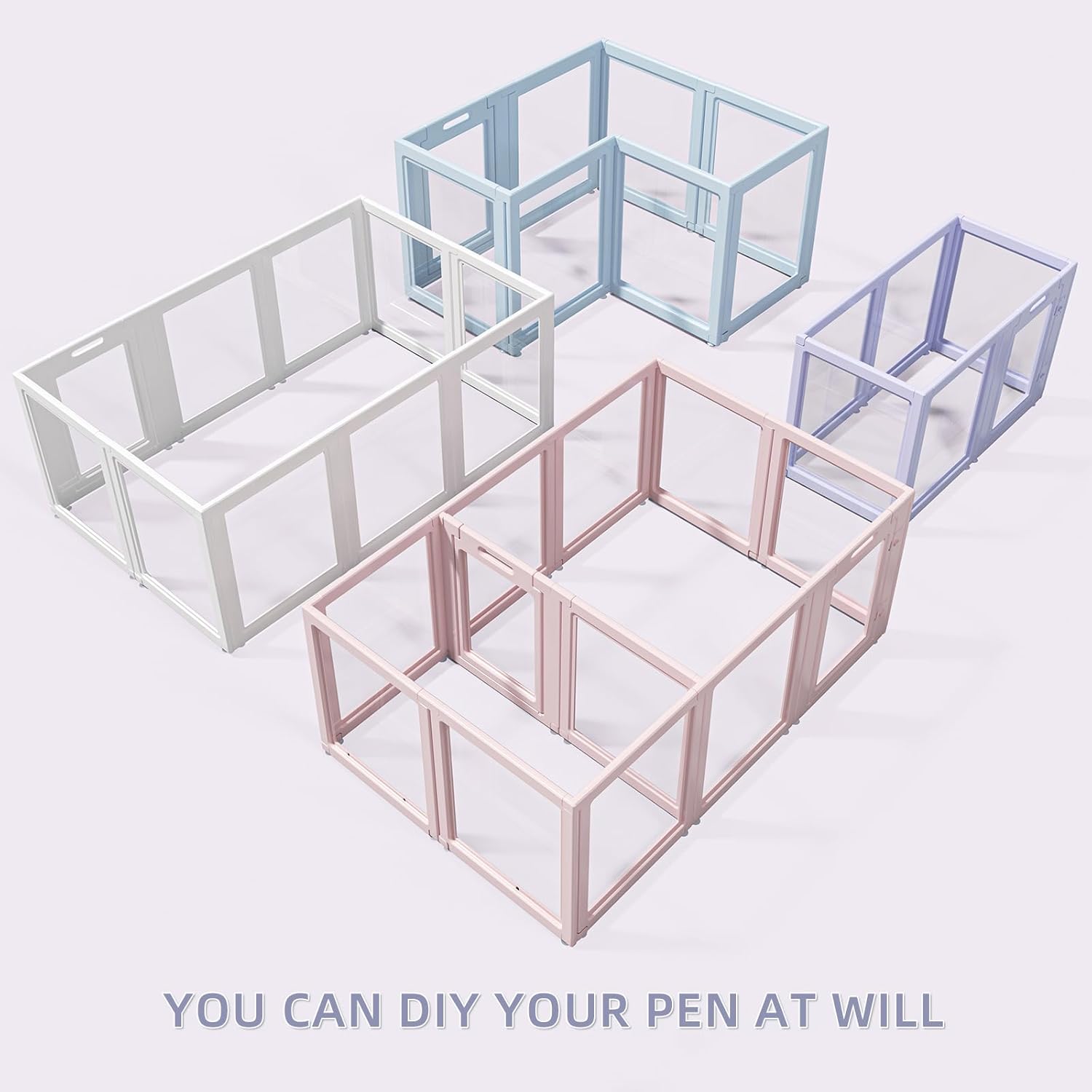 DIY Clear Acrylic Dog Playpen House,Quick Easy Assembly and Disassembly,Strong Floor Suction,Indoor and Outdoor Use,Easy Cleansing Puppy Fence (Sky Blue, 30.3" H, 10PCS)