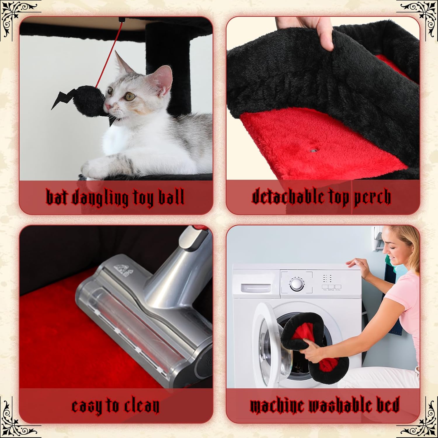 PETEPELA 56.3" Gothic Cat Tree for Indoor Cats, Tall Cat Tower with Super Large Hammock (20"X16"), Sisal Covered Scratching Posts, Cozy Condo and Top Perch Black