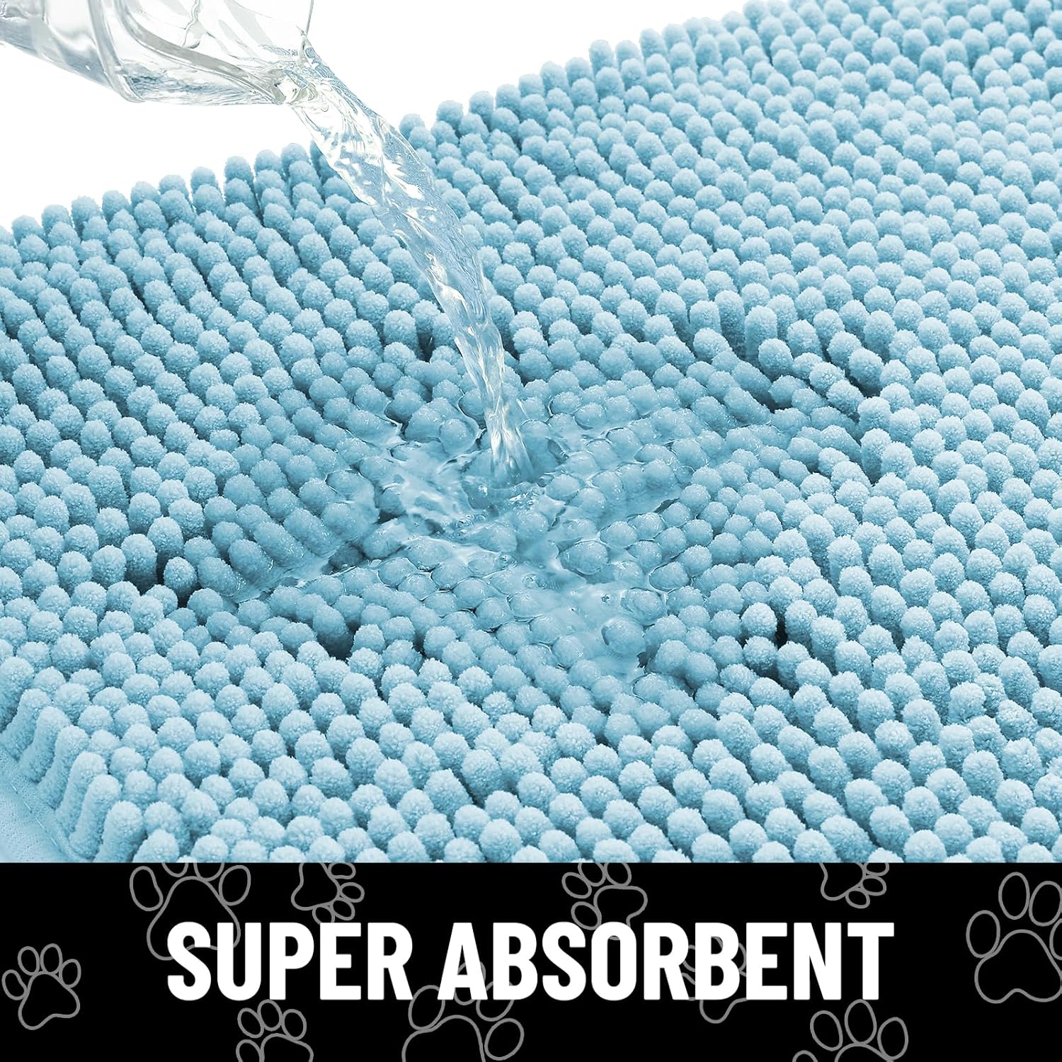 Smiry Dog Door Mat for Muddy Paws, Absorbent Dirt Trapper Non Slip Quick Dry Washable Chenille Mat for Mud Dogs, Entry Rug for Indoor and Outdoor (36x24 Inches, Sky Blue)
