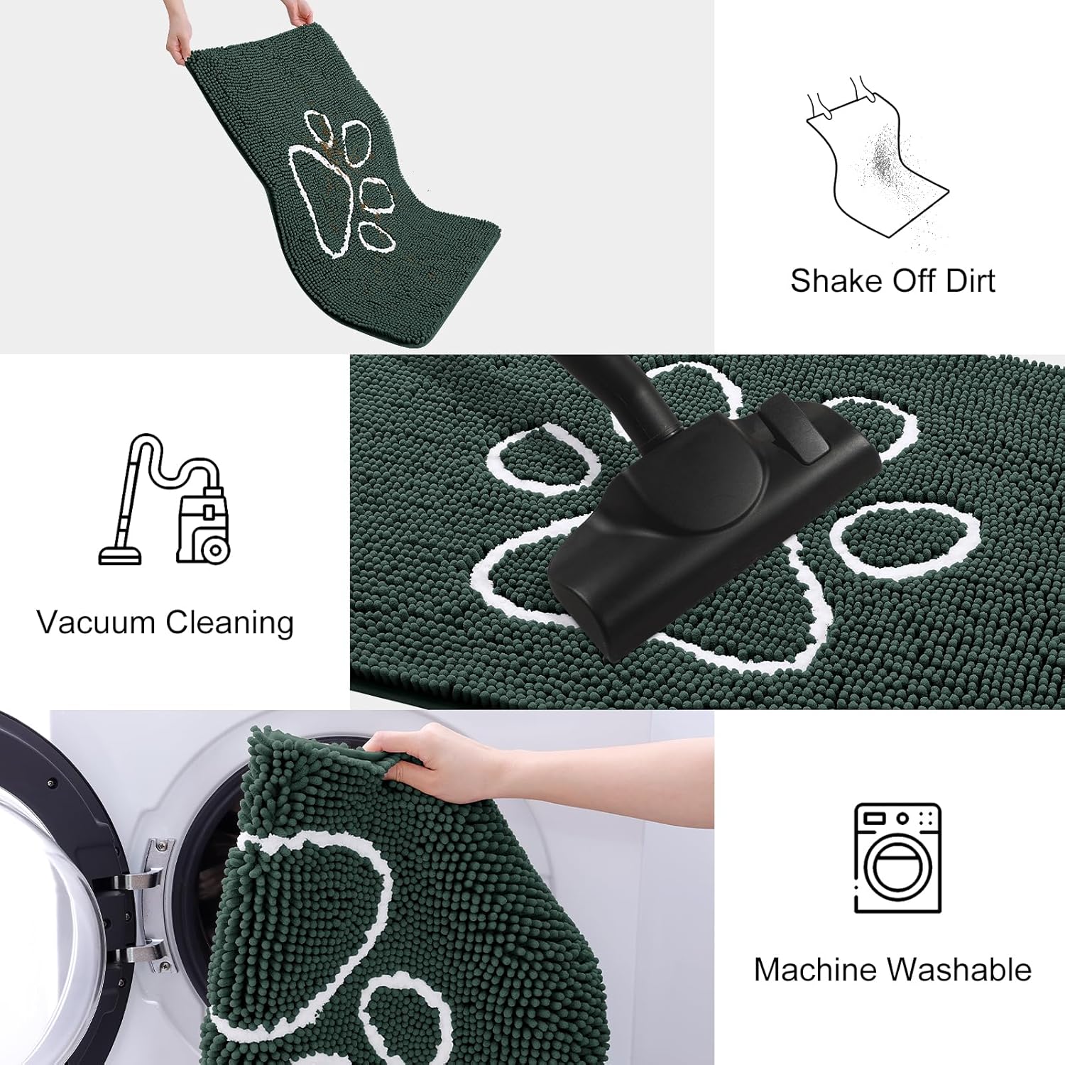Smiry Dog Door Mat for Muddy Paws, Absorbent Dirt Trapper Non Slip Quick Dry Washable Chenille Mat for Mud Dogs, Entry Rug for Indoor and Outdoor (47x32 Inches, Green)