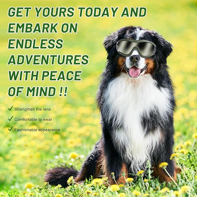 - Provide UV protection, shatterproof, waterproof, anti-fog, shield your dog's eyes from wind and debris.
