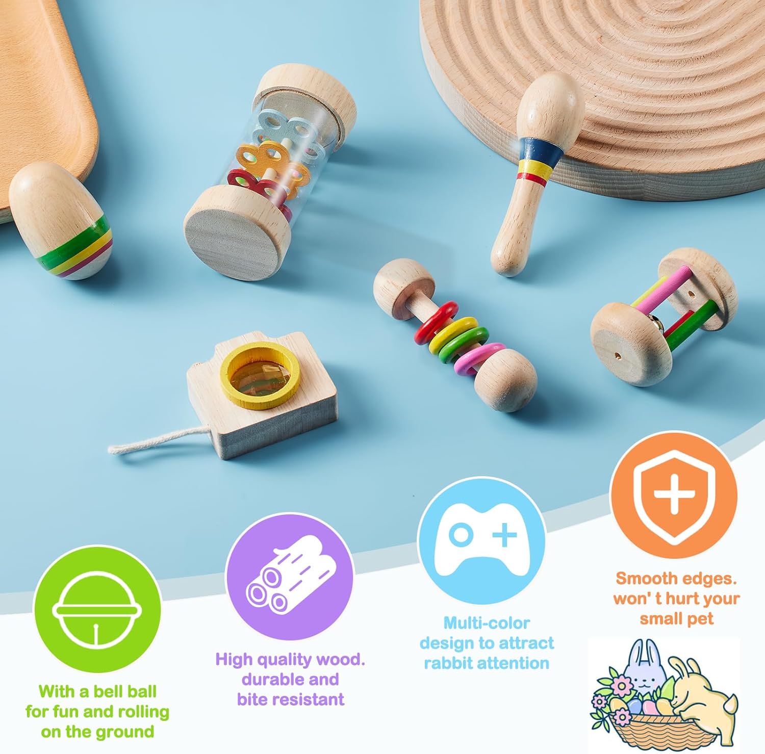 - Safe: Crafted from high-quality wood, our rabbit toys are finely polished for sturdiness and resistance to biting. With smooth edges designed to prevent harm to your small pets, they provide peace of mind while your furry friends play.
