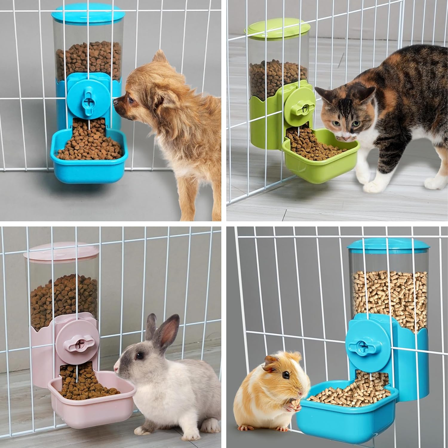 VANNON Small Animal Hanging Automatic Food Dispenser, 35oz Gravity Pet Feeder for Cage, Food Bowl for Rabbit Puppy Cat Ferret Guinea Pig Chinchilla Parrot (Green)