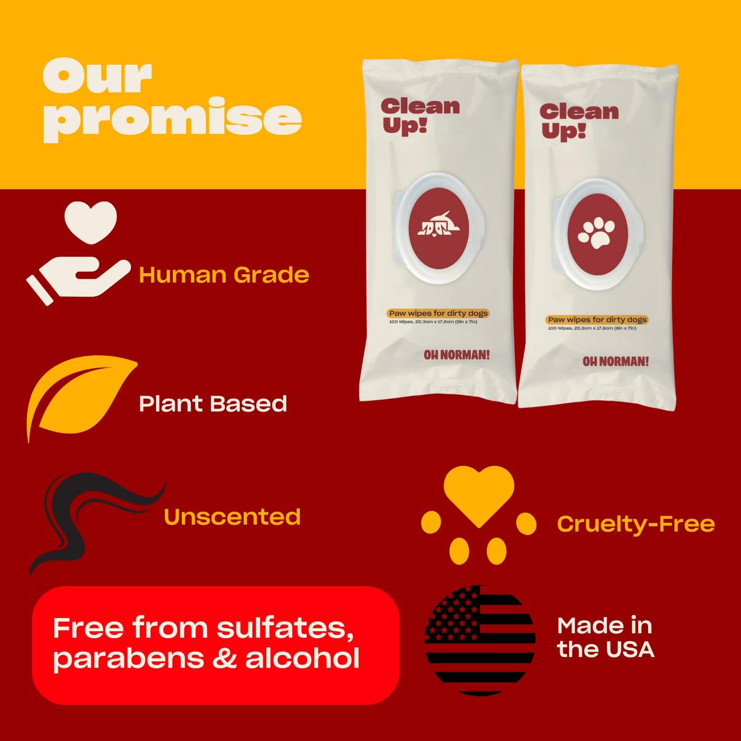 OH NORMAN! Clean Up Body Wipes for Dogs by Kaley Cuoco, Gentle Pet Grooming Wipes, Plant-Based and Unscented, 48 Count