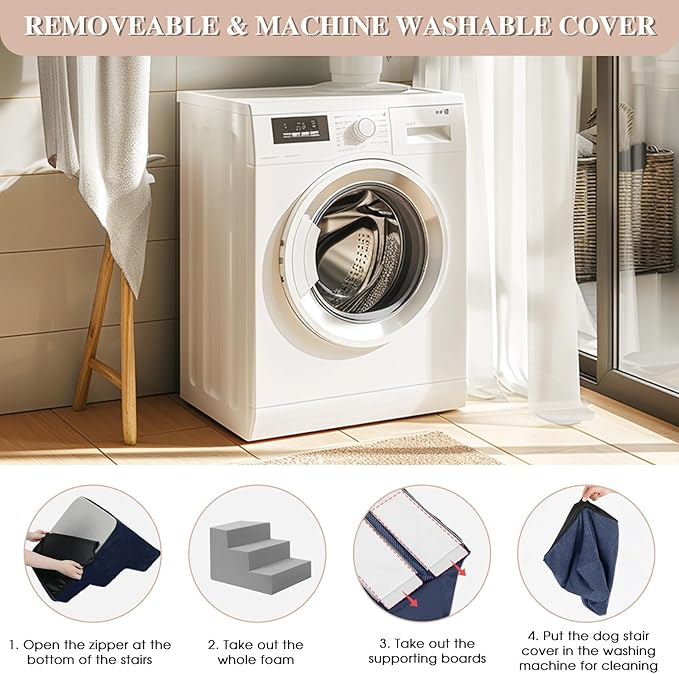 - 【ENHANCED STABILITY】GGIB dog stairs improve a new design with supporting boards, added between the foam stairs and the removable cover. They are fixed inside the cover. Pets can step on more stable and supportive stairs surface, preventing them from slipping when moving quickly.