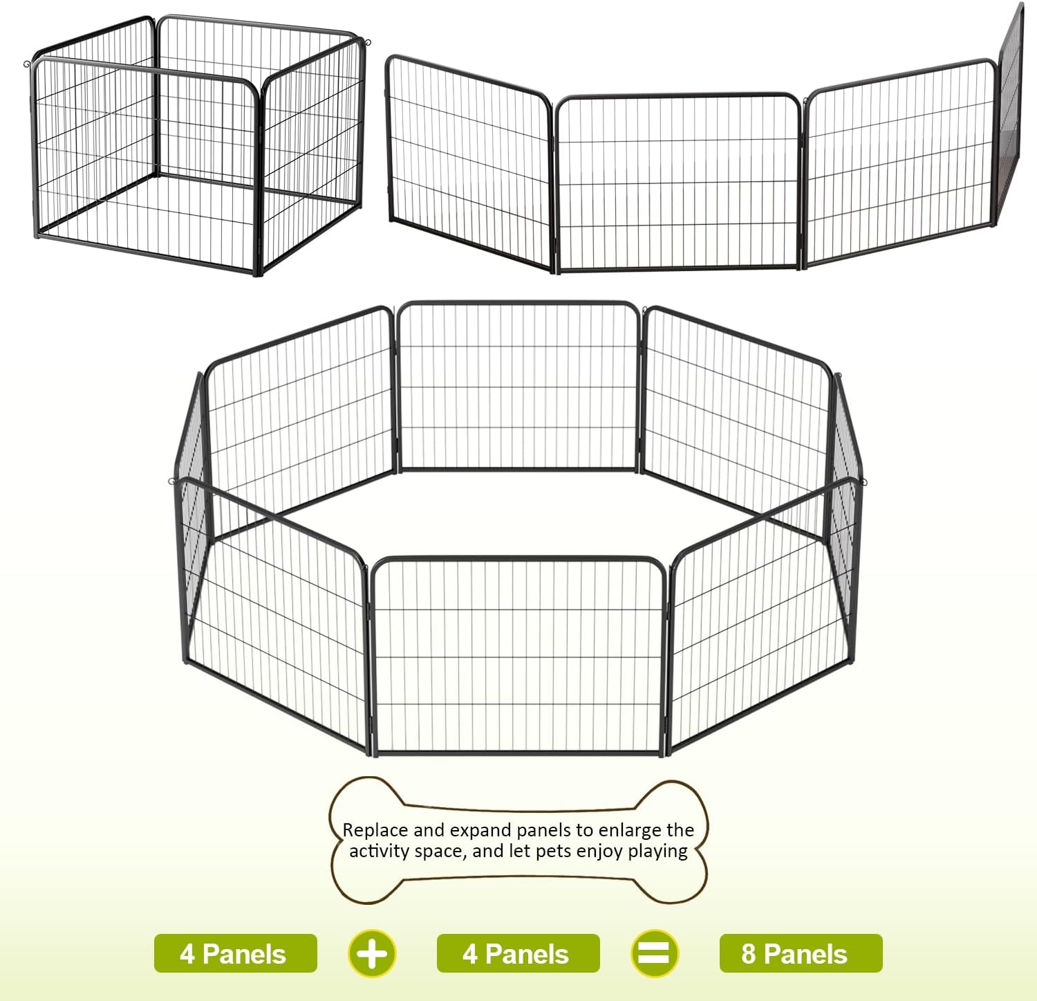 - USE AS EXTENSIONS OR REPLACEMENTS: These strong durable metal fence panels easily connect to expand your existing dog playpen or replace damaged sections, keeping your pet’s area safe and secure.