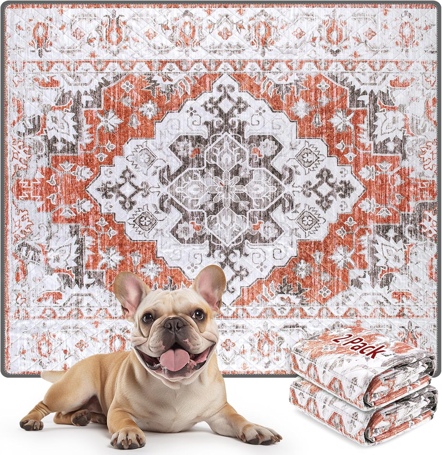 LOOBANI Reusable Pee Pads for Dogs, 2 Pack Super Absorbent Washable Puppy Pee Pads, Waterproof Non-Slip Whelping Pad for Floor Playpen Crate Couch-36 x48 (Red-Orange)