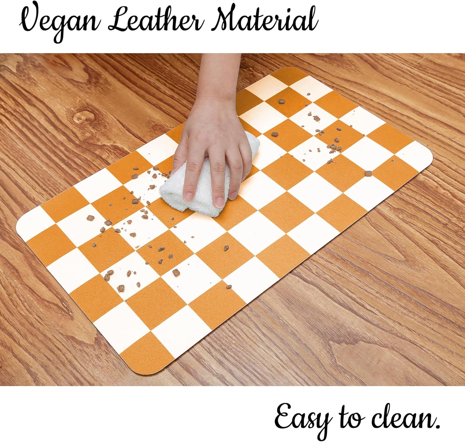 - Quality Material: Made of high-quality vegan leather, this product is designed to be durable, sturdy, and pet-friendly. The vegan leather material not only provides longevity but also ensures a comfortable surface for your pets. The rubber backing is specifically designed to offer a tight grip on various floor surfaces, including tiles, preventing any slipping or sliding.