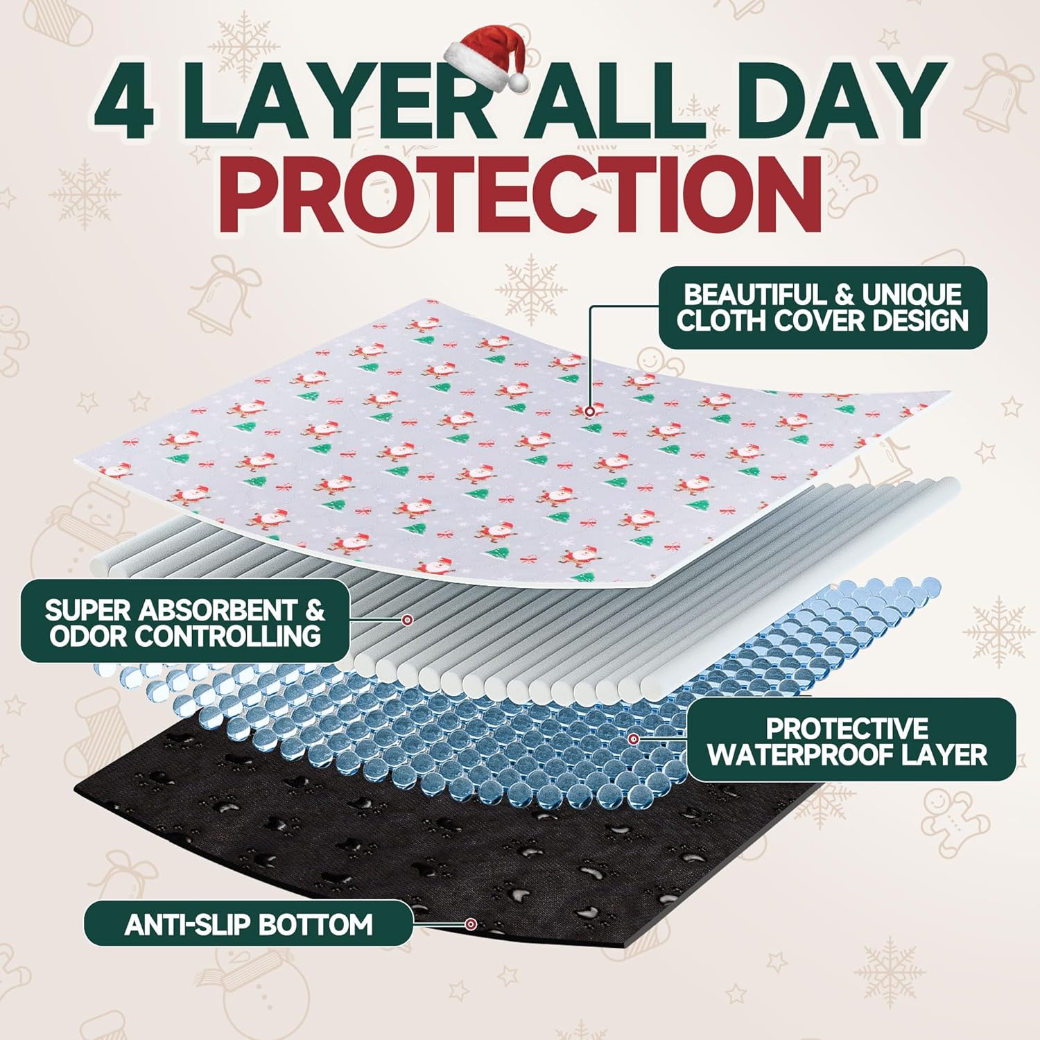 - Cute Christmas Design - The exterior design is themed with Cute Santa Claus Christmas tree, adding a festive atmosphere and allowing your pet to play to their heart's content in a warm environment. These pads seamlessly blend with your interior decor. It is both practical and interesting