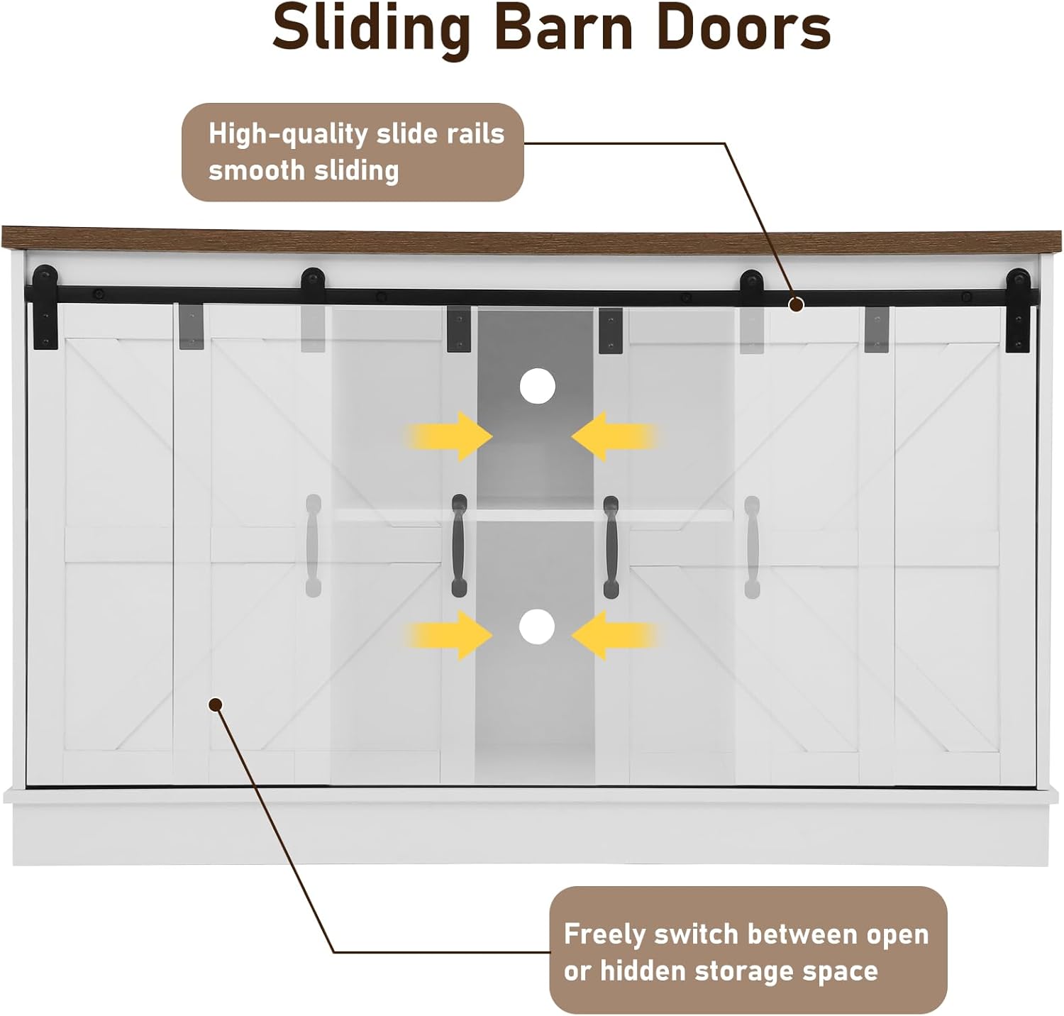 Farmhouse 55-75 Gallon Fish Tank Stand with Power Outlet, Aquarium Stand with Cabinet&Sliding Barn Door, Heavy Duty Reptile Tank Stand for 2 Fish Tank/Turtle Tank/Reptile Terrarium, White