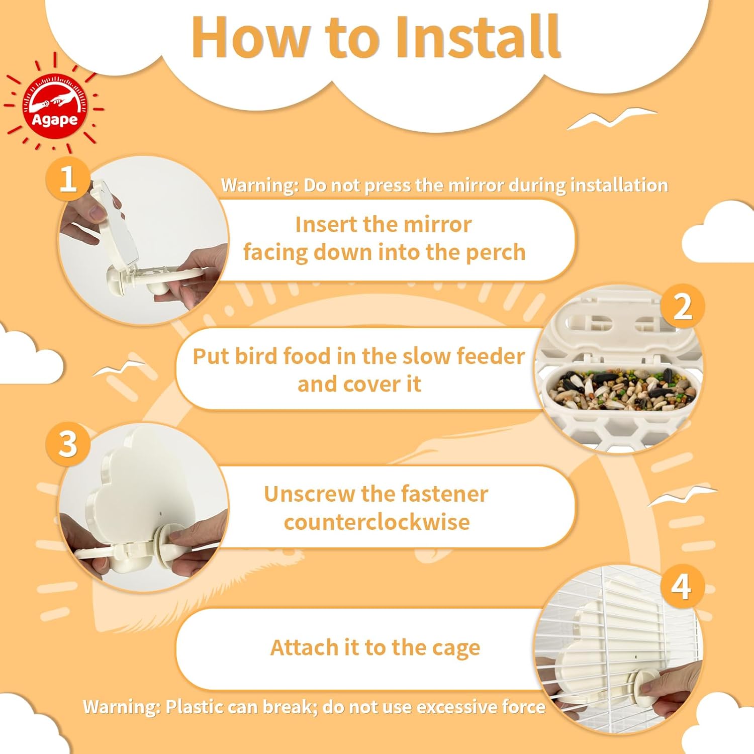 Agape Parakeet Mirror with Perch & Slow Feeder, Bird Cage Accessories for Small Parrots to Expend Energy, Bird Toys for Boredom&Anxiety, Interactive Toy for Cockatiel, Lovebird, Conure, Finch, Budgies
