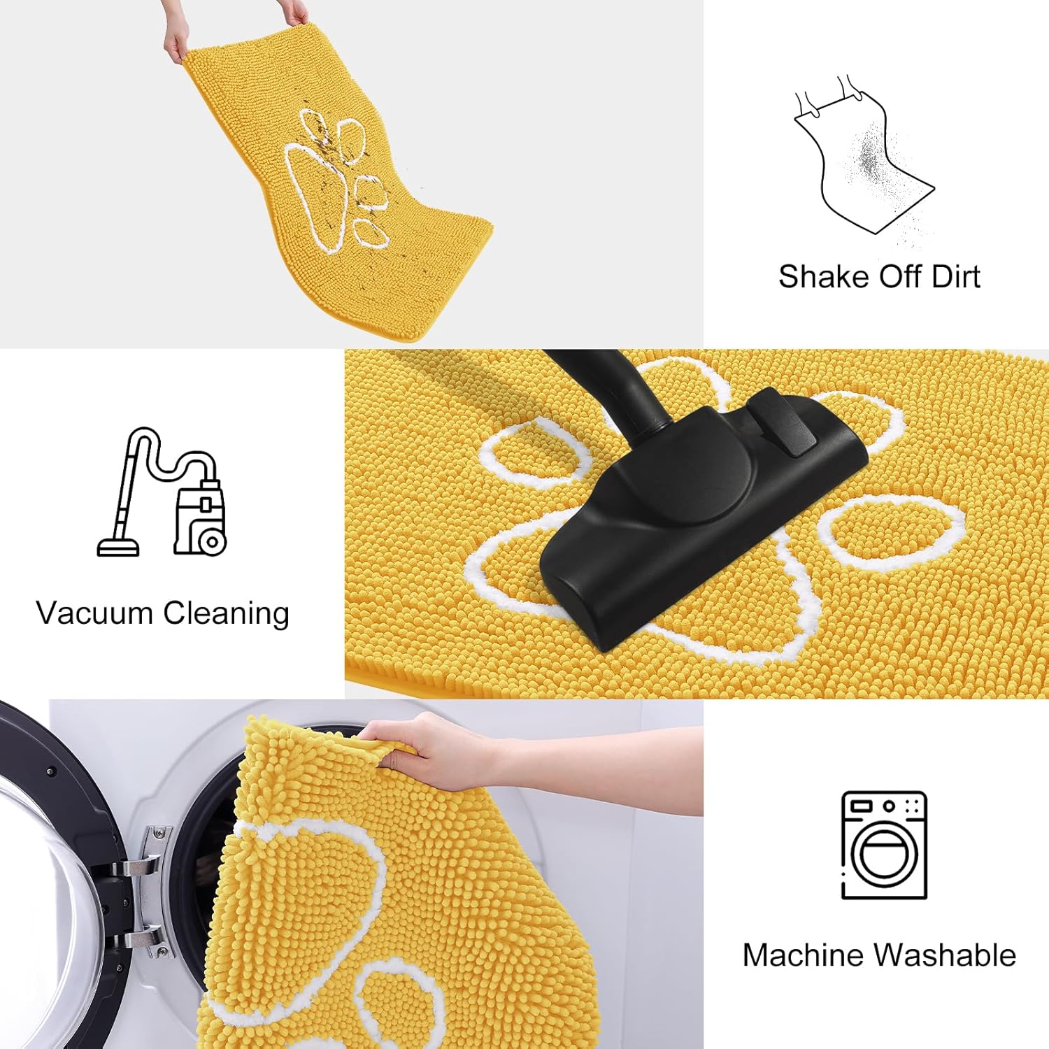 Smiry Dog Door Mat for Muddy Paws, Absorbent Dirt Trapper Non Slip Quick Dry Washable Chenille Mat for Mud Dogs, Entry Rug for Indoor and Outdoor (36x24 Inches, Yellow)