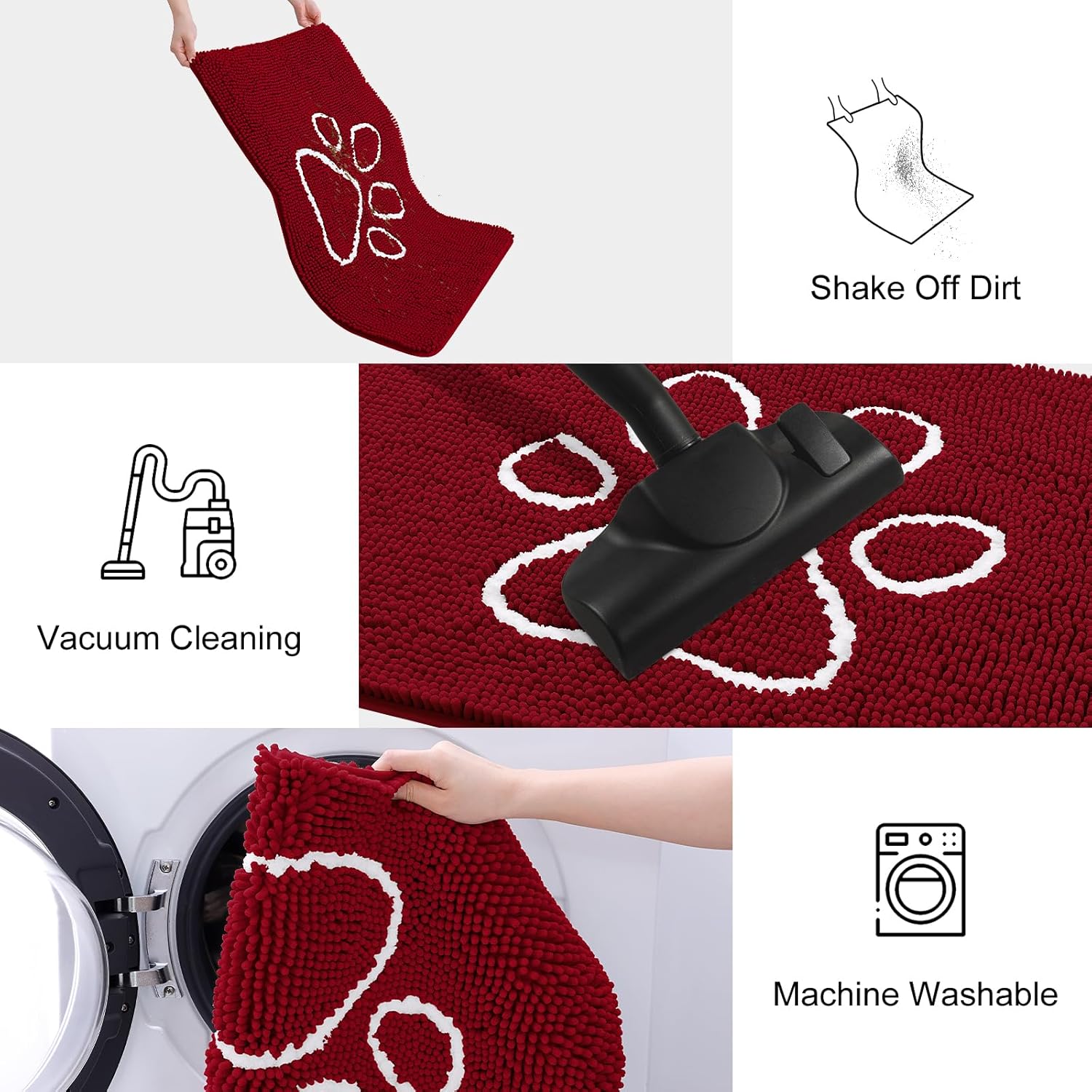Smiry Dog Door Mat for Muddy Paws, Absorbent Dirt Trapper Non Slip Quick Dry Washable Chenille Mat for Mud Dogs, Entry Rug for Indoor and Outdoor (36x24 Inches, Red)