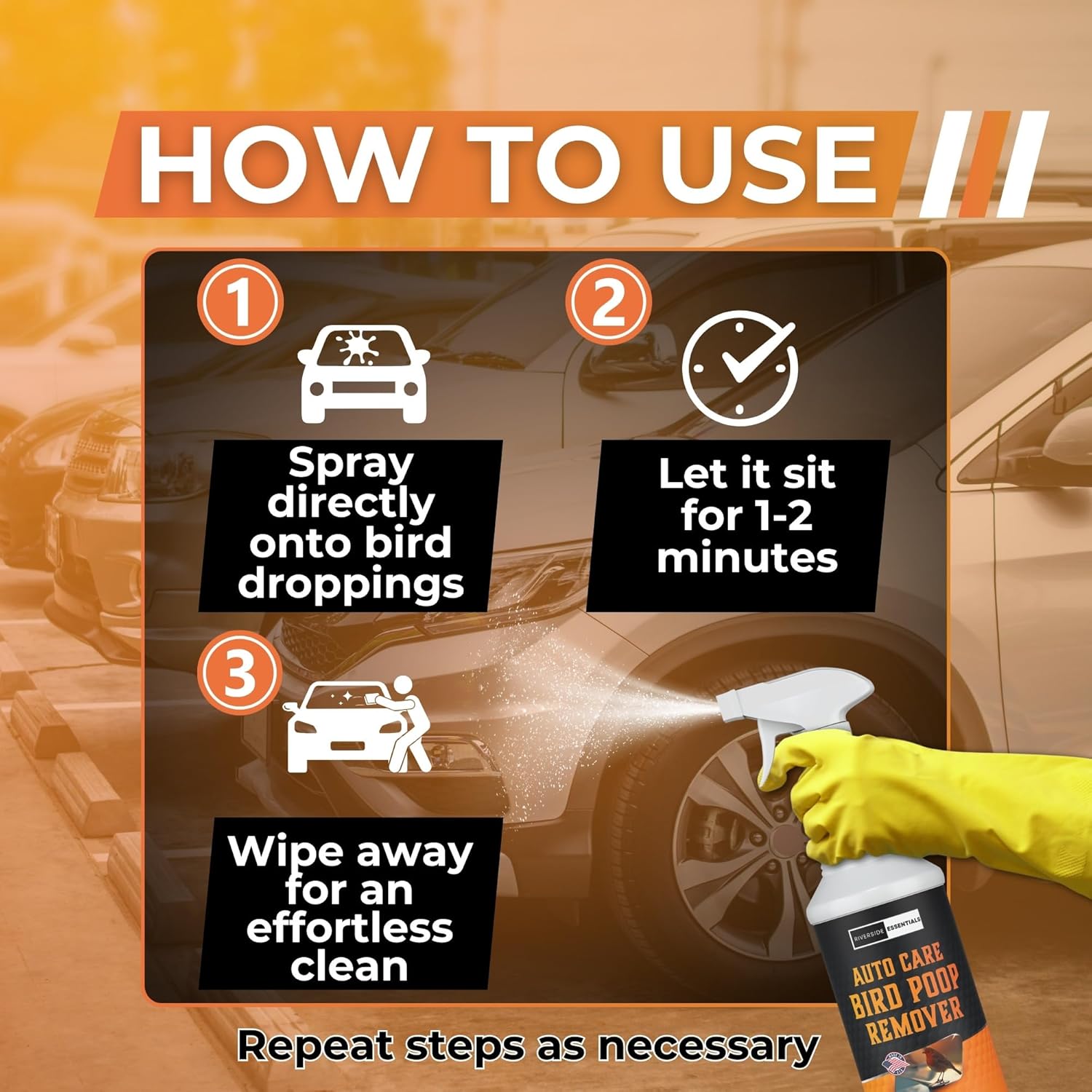 - Powerful Cleaning Formula: This advanced car cleaner is specially designed to tackle stubborn bird droppings and other tough organic stains from your vehicle's exterior. Its powerful formula penetrates deep into the stains, breaking them down for easy removal while protecting your car's finish. Simply spray it on, let it sit and work its magic, and wipe away with ease.