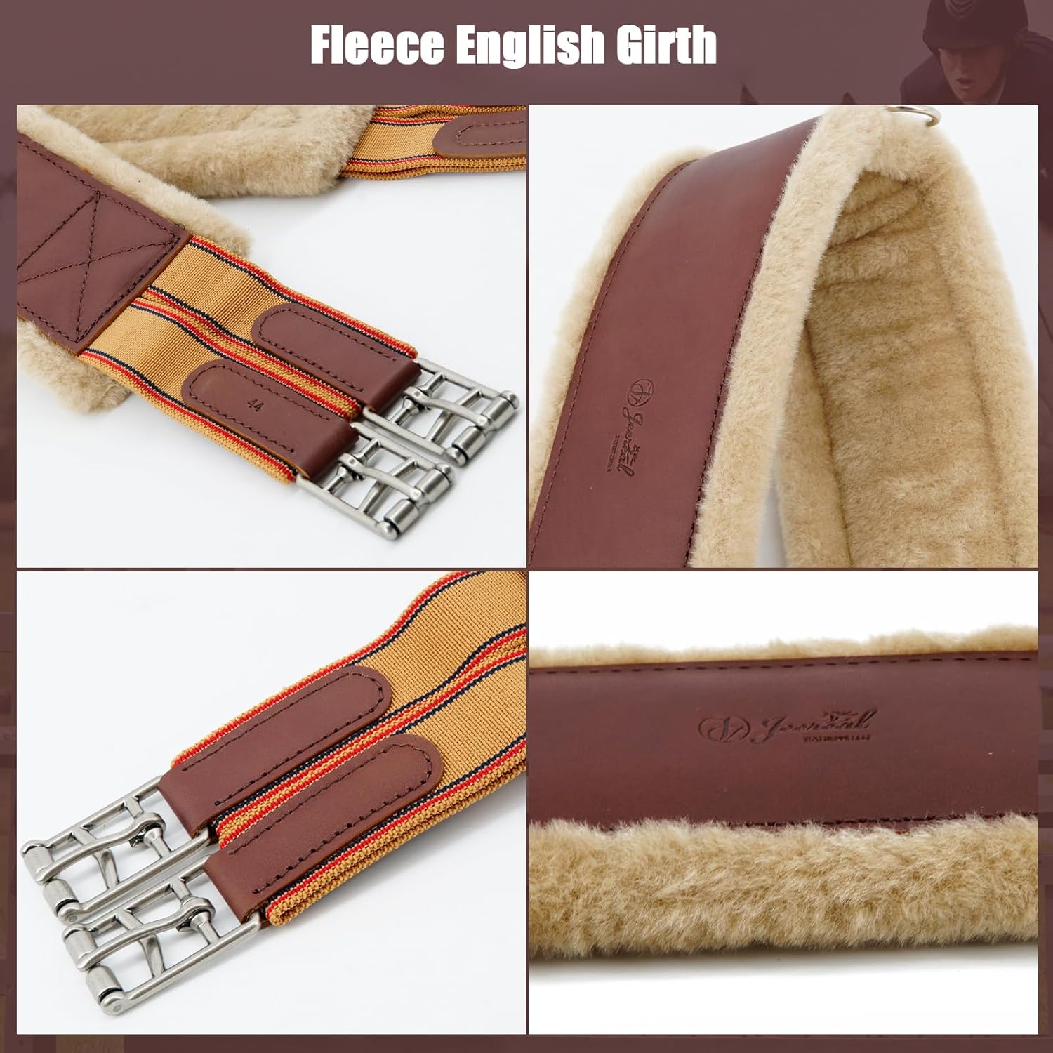- Fleece English Girth: Features double heavy-duty elastic for a secure and comfortable fit.Micro-stretch for a better fit to adapt to the English saddle and protection to keep the horse's belly from getting hurt.