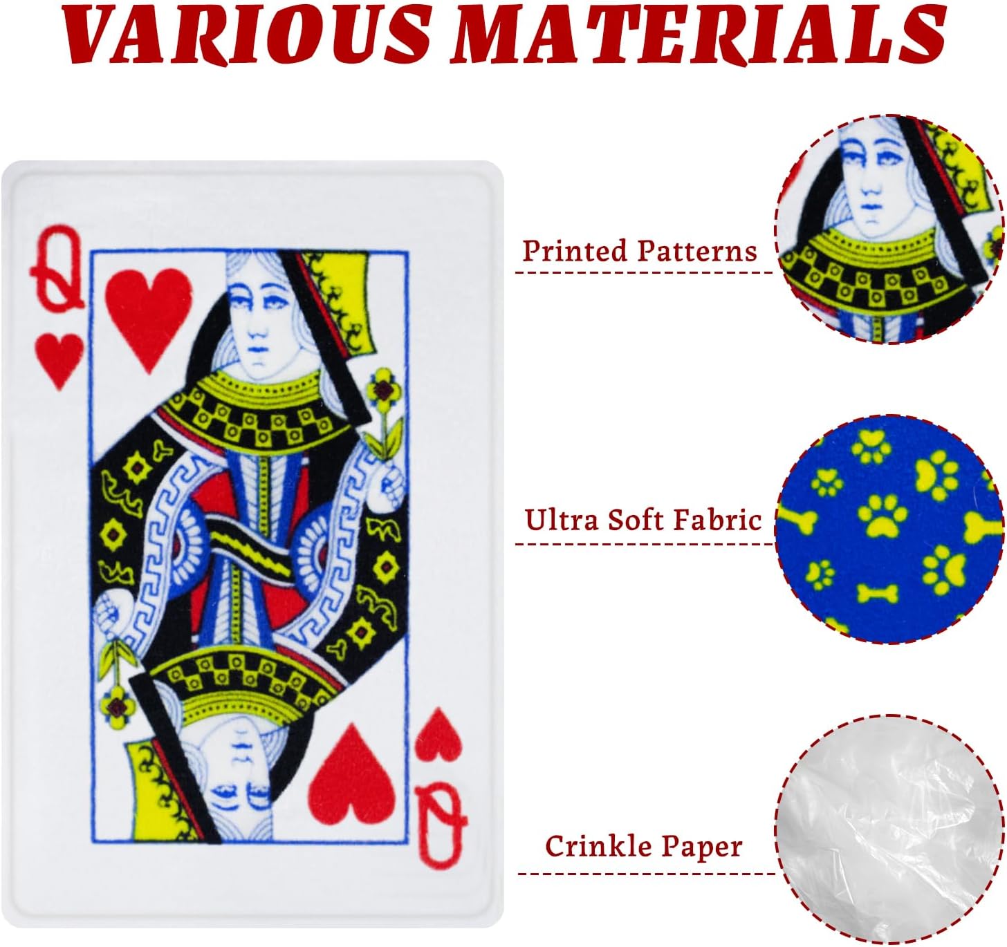 15PCS Funny Poker Dog Toys- Plush Interactive Toys with Crinkle Paper for Small, Medium Puppies- Fun Novelty Play- Cool Stuffed Gifts for Dog Birthday(Red)