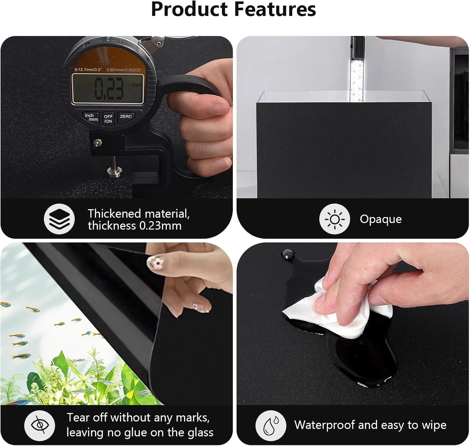 - Visual Enjoyment:The pure black fish aquarium background wallpaper is non-reflective and opaque, which not only makes your fish tank look neat and beautiful, but also enhances the colors of fish and plants, creating a more vivid and beautiful underwater scenery, giving you a different visual enjoyment.