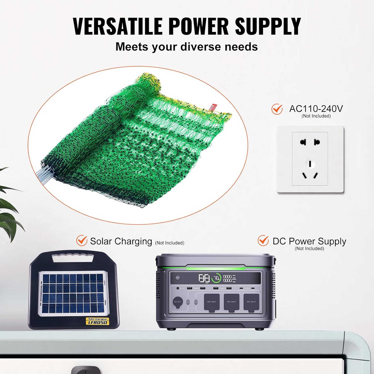 - Multiple Power Supply Options: This electric fence supports external power supply of AC110-240V, as well as solar panels. These multiple power supply options reduce energy consumption and provide a green solution for your farm.