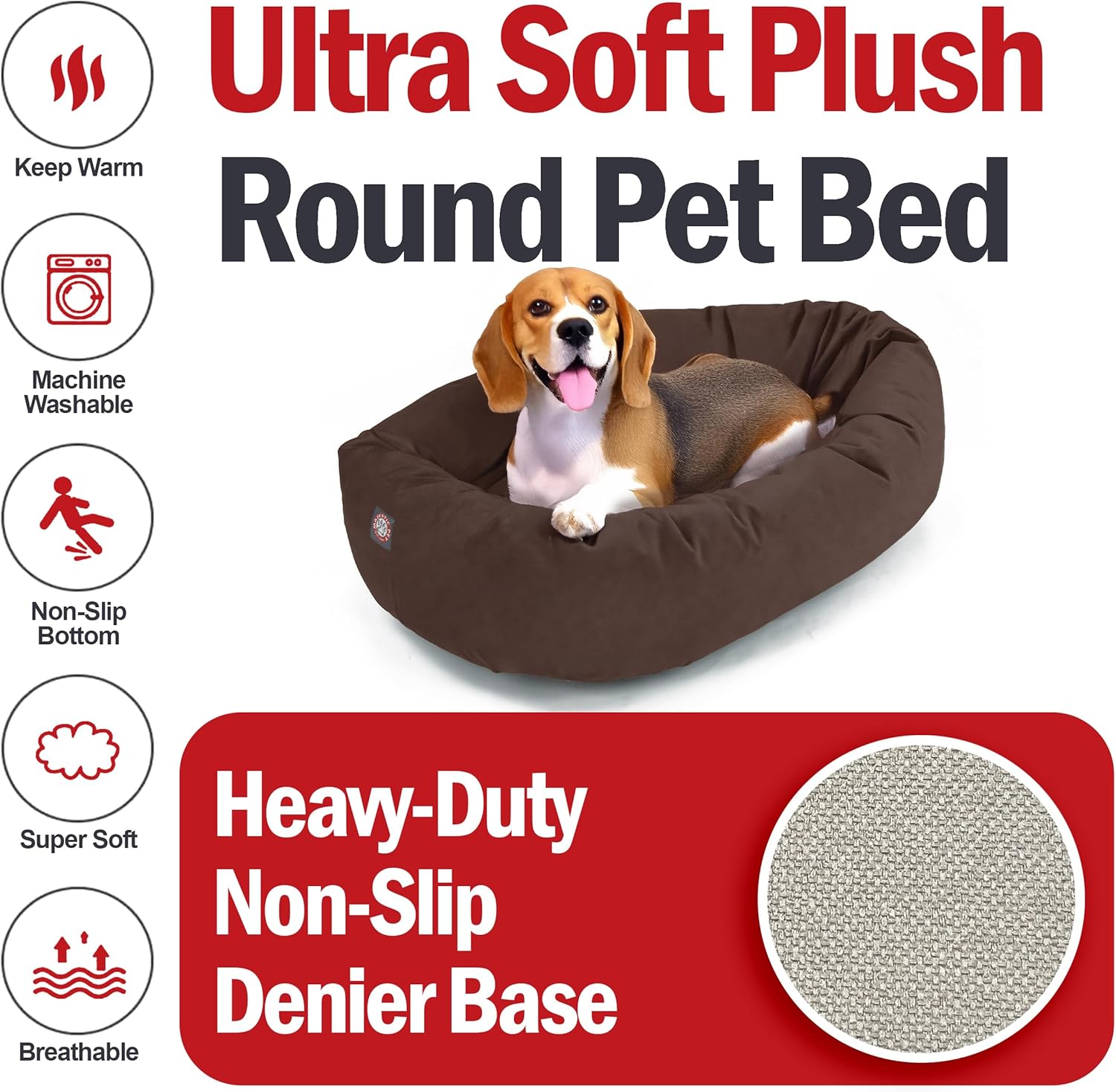 Majestic Pet 32 Inch Suede Shredded Memory Foam Mix Calming Medium Dog Bed Washable 32x23x7 (Inch) - Cozy Soft Round Donut Dog Bed with Spine for Head Support - Pet Bed Chocolate