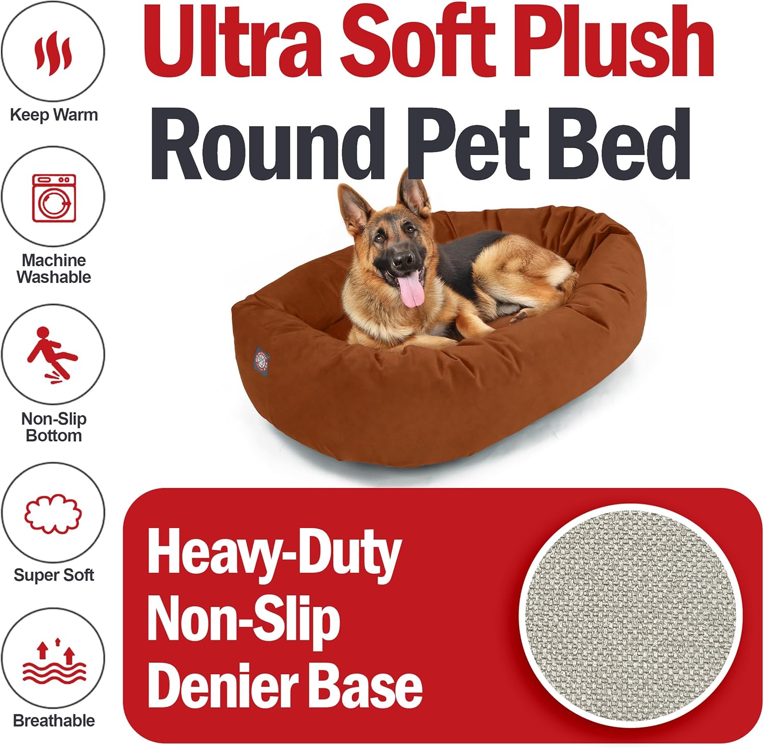 Majestic Pet 52 Inch Suede Shredded Memory Foam Mix Calming Extra Large Dog Bed Washable 52 x 35 x 11 (Inch) - Cozy Soft Round Donut Dog Bed with Spine for Head Support - Pet Bed Rust
