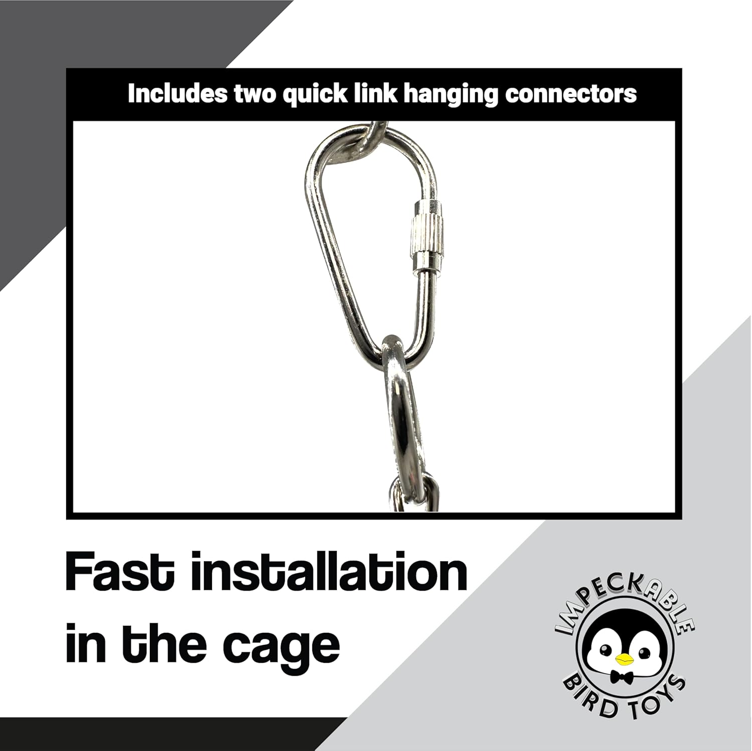 - Two quick link connectors allow flexible cage hanging and multiple orientation options for fresh experiences. Easily change how the toy is hung to keep the play experience fresh and fun for pets.