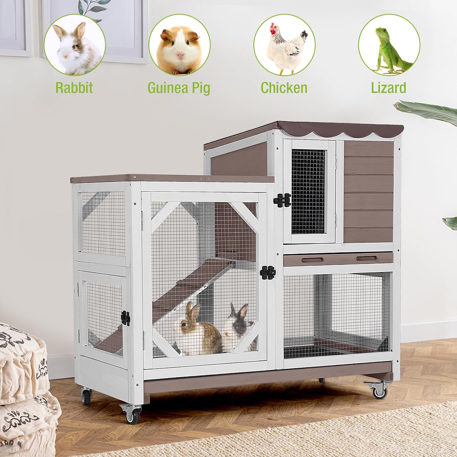 - Leak-Proof Trays: Two deep, pull-out trays keep your bunny's home clean and dry. These trays are leak-proof, making cleaning a breeze and providing a healthier environment for your pet