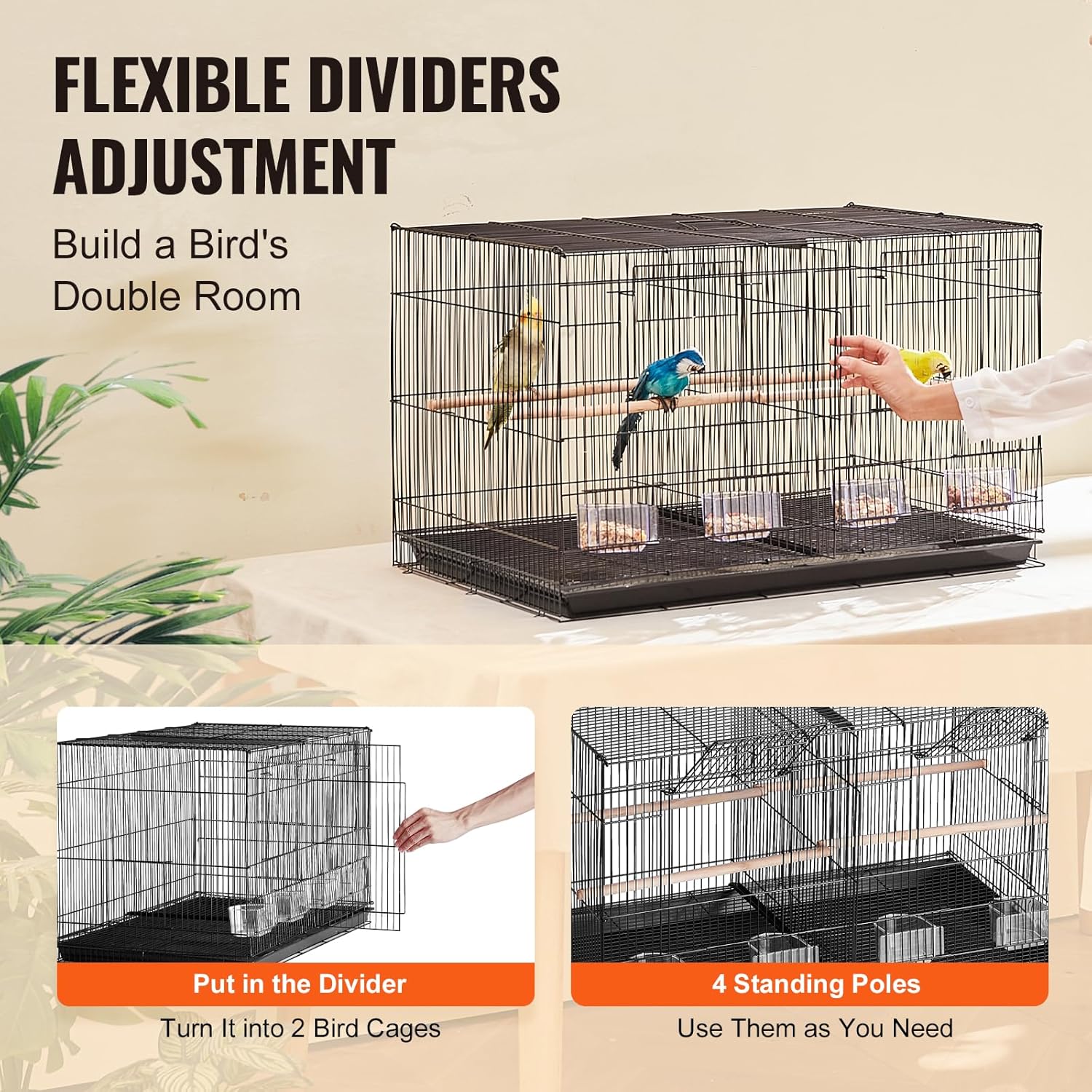 VEVOR 30-inch Flight Bird Cage, Stackable Divided Small Parakeet Cage for Parrots Canaries Cockatiels Lovebirds Finches Budgies Conures Macaws Pet Travel Birdcage with Handle and Perches