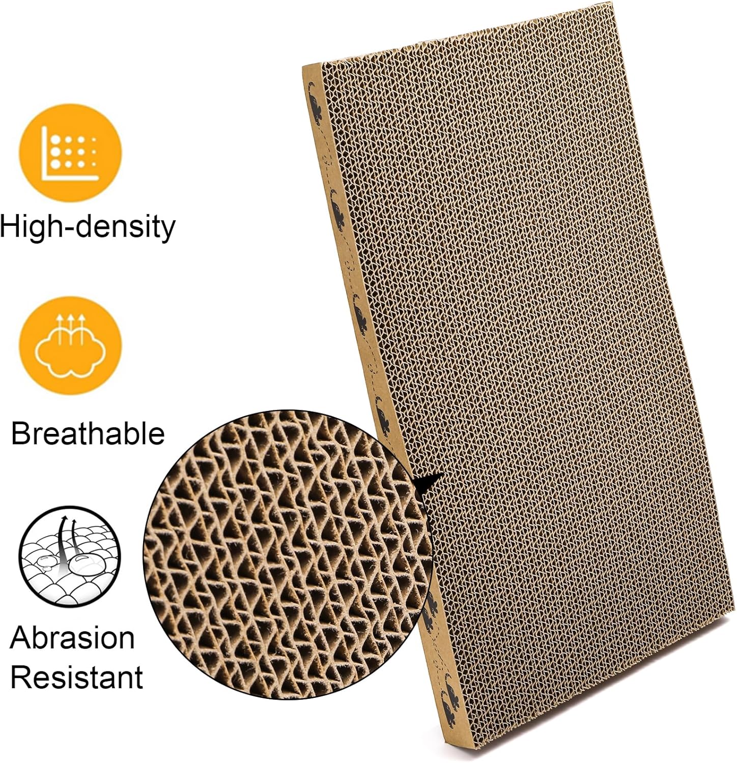 - High Quality Material: Our cat scratcher bed is made of heavy duty cardboard, totally premium and durable. The dense corrugated surface can withstand sharp claws for a long time, helping your cat stretch and keeping your cat's claws trimmed and well-maintained.
