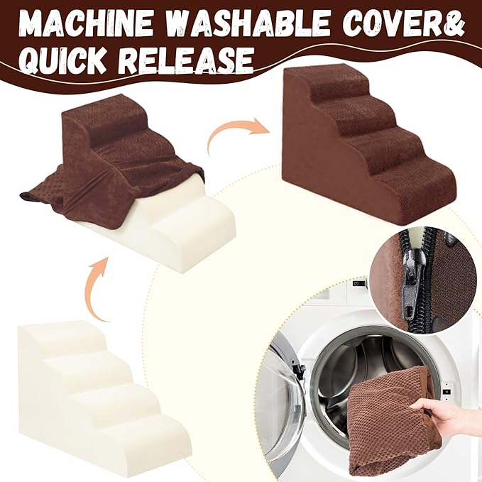 - Double Sided Anti Slip: The dog steps cover is made of corduroy with greater friction than other fabrics, which provides extra grip while in use, the bottom features nonslip rubber dots, preventing pets from sliding while climbing, providing pets with double safety protection
