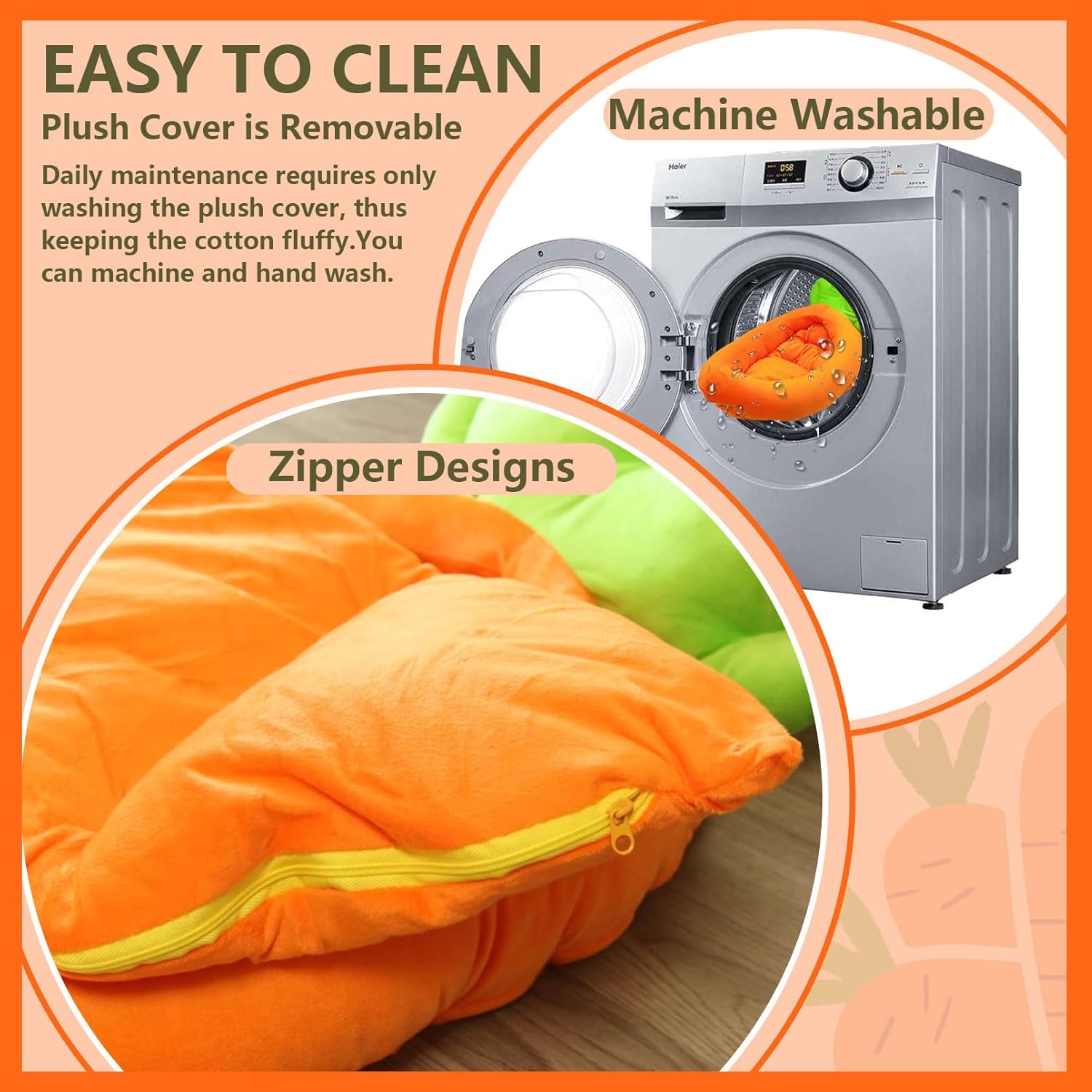 - 🐇[MACHINE WASHABLE]:If you find a bit of dust on the rabbit bed, you can just wash the plush cover. Because our rabbit bed has a zipper design, the plush cover is removable. If the whole thing is dirty, you can just throw the rabbit bed into the washing machine.