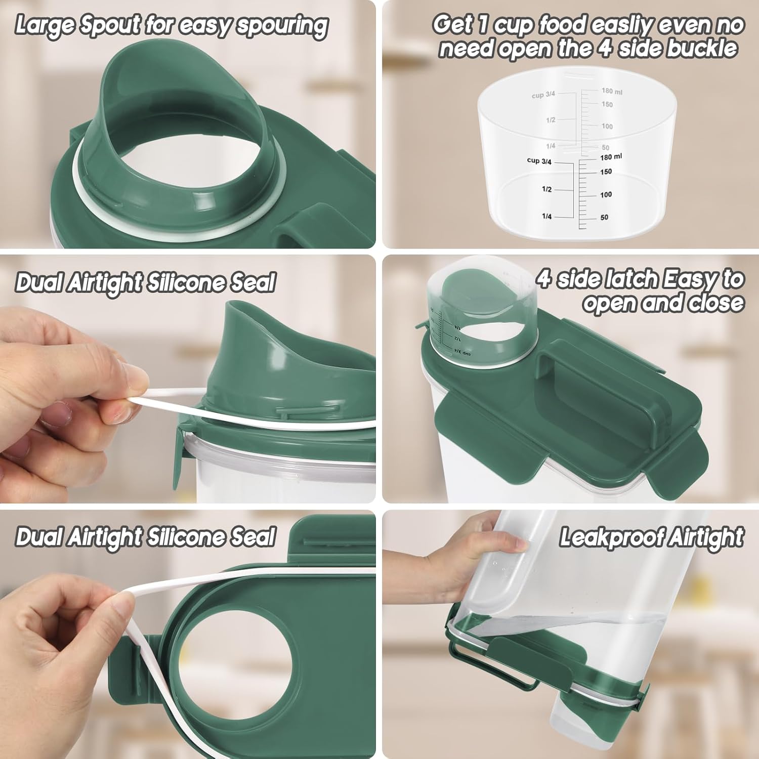 - FUNCTION : This airtight dog food container with portable handle has an airtight design,-has 2 silicone seals and 4 sealing buckles,which can keep your food dry and fresh, the portable handle and large spout design can easily Easily pours food out,also perfect for traveling, hiking, camping or picnicking with your dog。