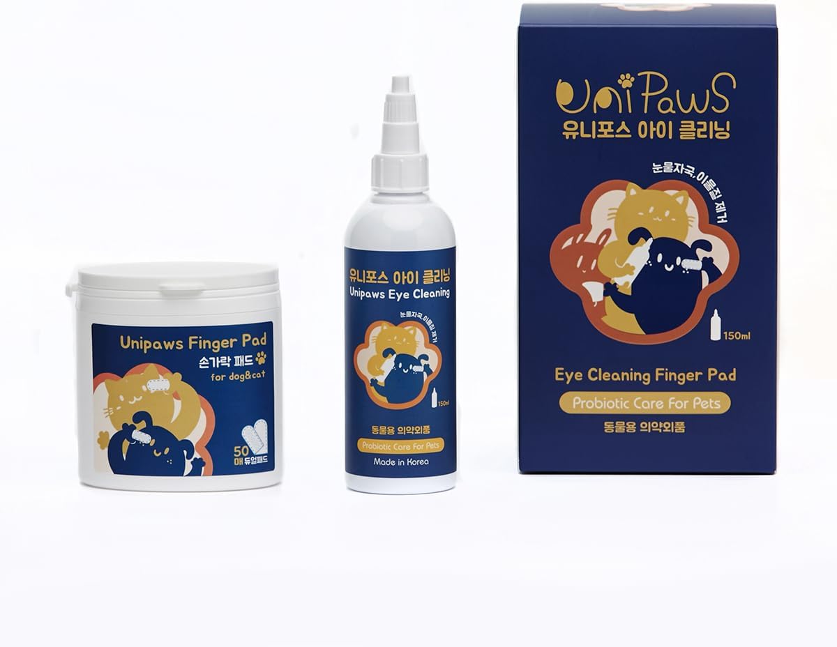 UNIPAWS Dog & Cat Eye Area Cleaner with Wipes – Vet-Recommended Tear Stain Remover – 5.1 fl oz Cleaner + 50 Dry Finger Wipes – Probiotic & Plant Formula, Gentle Grooming Care