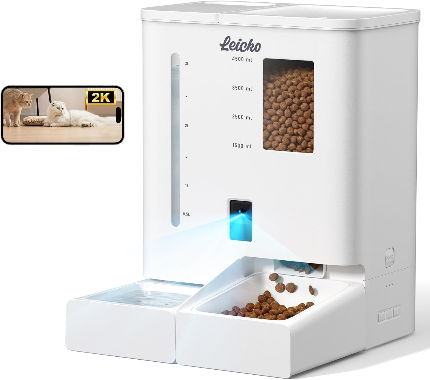 Automatic Cat Feeder with Camera,5G/2.4G WiFi Pet Feeder,2K HD Video and Night Vision,Easy APP Operation,Low Food and Food Clogging APP Tips,Water and Grain Large Capacity Feeder