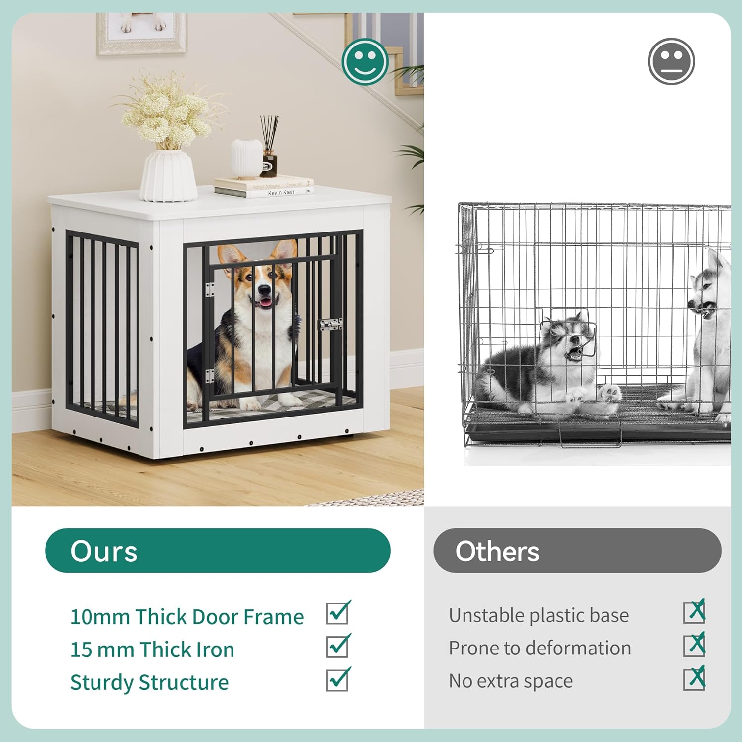 YITAHOME 30.1" L Dog Crate Furniture for Medium Dogs, 2-in-1 Iron-Wood Fusion Dog cage Indoor up to 35 lb, Side End Table, Modern Dogs Kennel with Waterproof Top, Safety Corners,Steel Lock,White