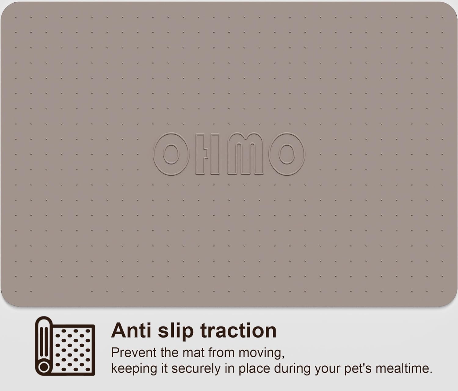 OHMO Dog Food Mat, Silicone Waterproof Cat Food Mat, Non-Skid Spill Proof Pet Feeding Mat for Food and Water, Easy to Clean Dog Placemat(Beige, 23.6" x 15.8")