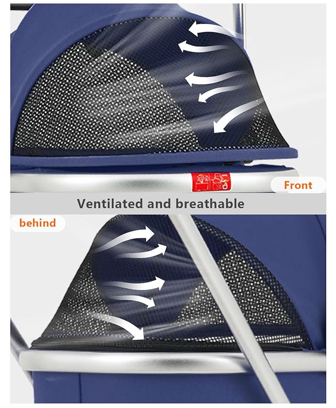 - [Customizable Ease] - Enjoy a customizable and accessible pet strolling experience with our stroller's adjustable canopy, breathable mesh windows, and a cozy padded interior for comfort, complemented by convenient dual-access zippered fronts for easy entry and exit