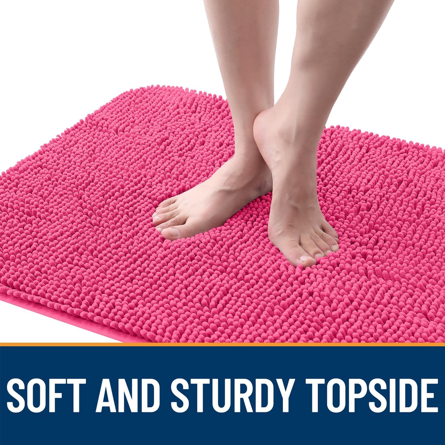 OLANLY Dog Door Mat for Muddy Paws 59x32, Absorbs Moisture and Dirt, Absorbent Non-Slip Washable Doormat, Quick Dry Chenille Mud Mat for Dogs, Entry Indoor Entryway Carpet for Inside Floor, Hot Pink